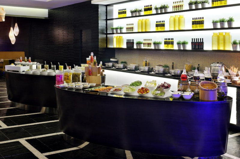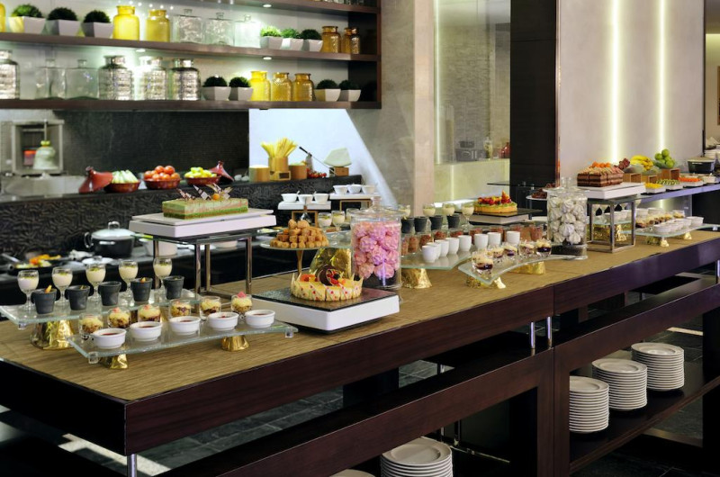 La Marriot Hotel Al Jaddaf oaspeții au la dispoziție 5 restaurante unde pot savura mâncăruri delicioase, în stil bufet sau à la carte. Preparate din bucătăria internațională și italiană sunt oferite zilnic la micul dejun, prânz și cină. Masa poate fi servită atât în interior, cît si în aer liber, pe terasă, în funcție de vreme. Oaspeţii pot avea diverse băuturi răcoritoare sau alcoolice la bar. În cadrul proprietății există și o cafenea ideală pentru o gustare rapidă. Pentru cei cu anumite nevoi de nutriție, Marriot Hotel Al Jaddaf oferă meniuri pentru diete speciale.