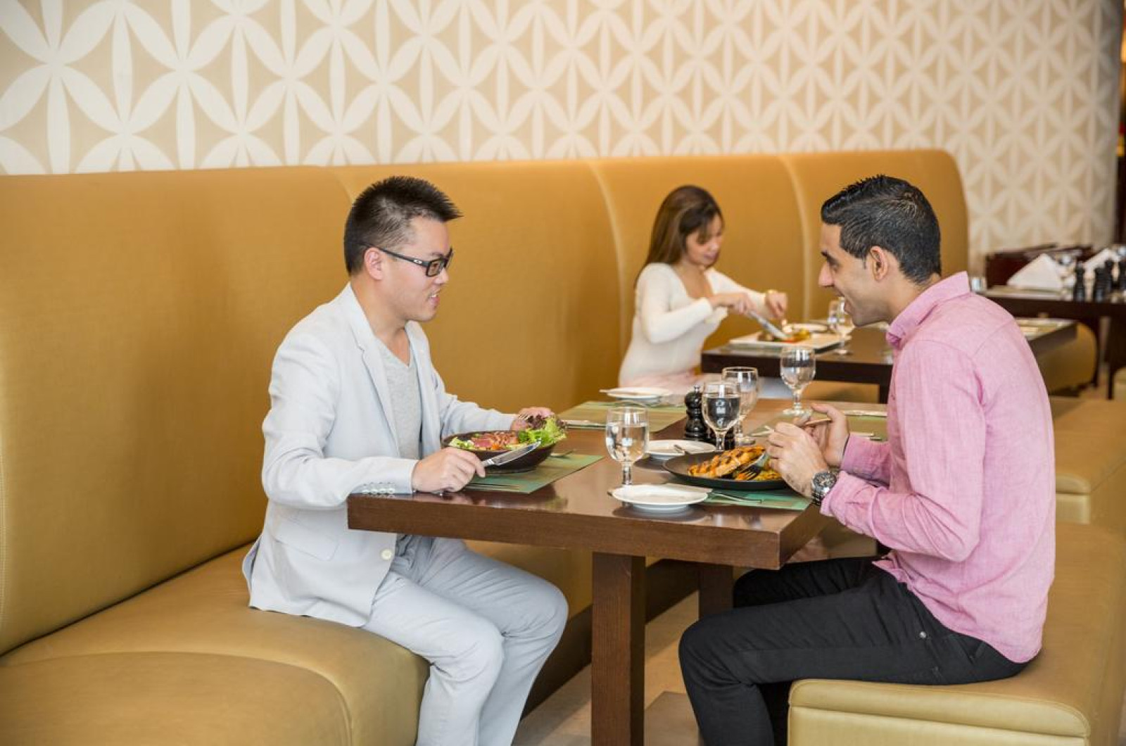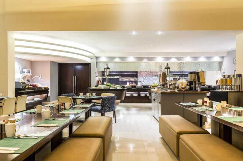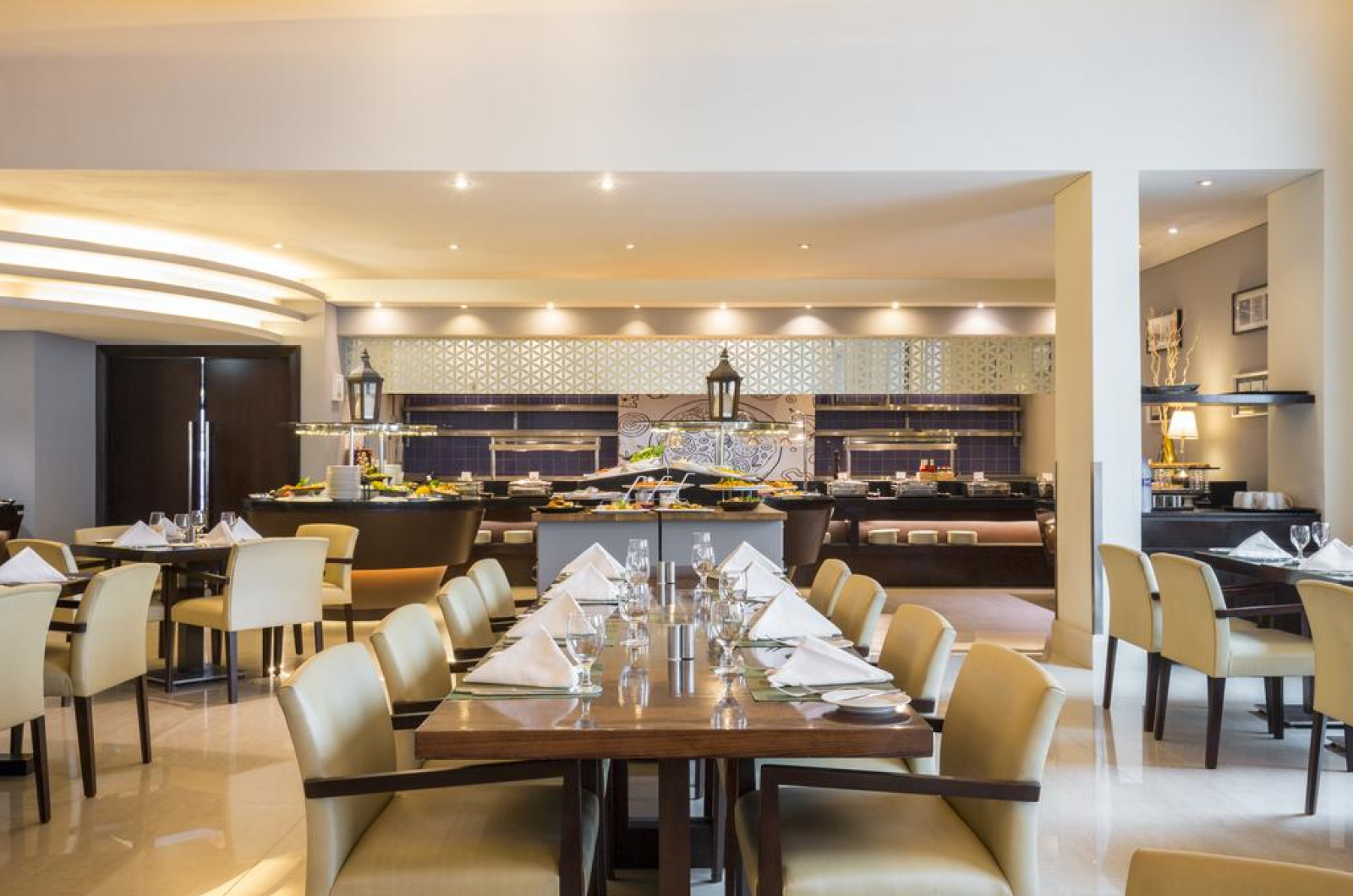 Preparate din bucătăria internațională și mediteraneană așteaptă să fie degustate în fiecare zi la micul dejun, prânz și cină. Masa poate fi servită atât în interior, cît si în aer liber, pe terasă, în funcție de vreme. Oaspeţii pot avea diverse băuturi răcoritoare sau alcoolice la bar. În cadrul proprietății există și o cafenea ideală pentru o gustare rapidă. Pentru cei cu anumite nevoi de nutriție, Novotel Deira City Centre oferă meniuri pentru diete speciale.