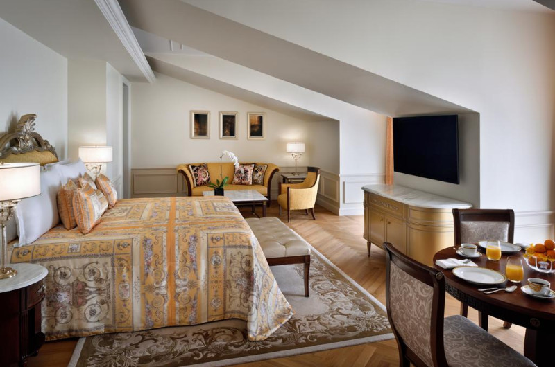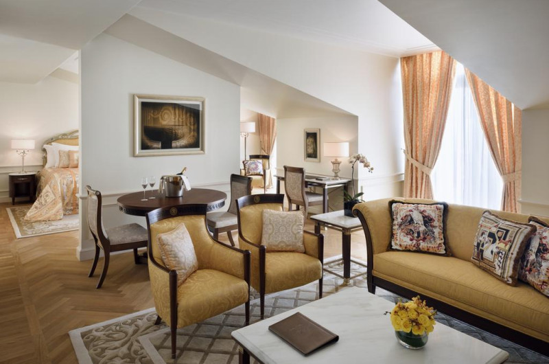 Camerele luminoase de la Palazzo Versace Dubai sunt dotate cu parchet, aer condiționat, Tv cu canale prin satelit și seif. Fiecare cameră dispune de un aparat pentru preparare cafea sau ceai, cană-fierbător și minibar. Oaspeții pot solicita serviciul de room service pentru a servi masa sau diverse băuturi. Oaspeții au acces gratuit la serviciul Wi-fi în camere. În camere există baie cu cadă sau duș, foehn, articole de toaletă gratuite, precum și halate de baie și papuci. Camerele au balcon cu vedere la piscină sau la oraș. Curățenia in cameră se face zilnic.