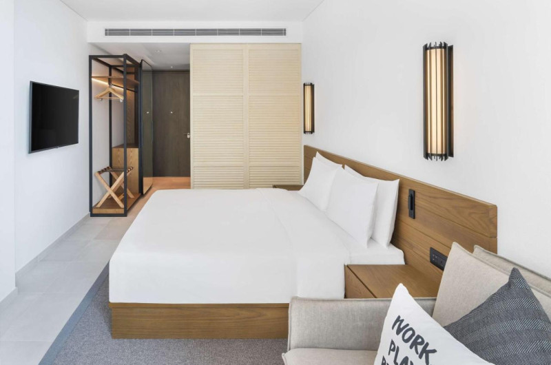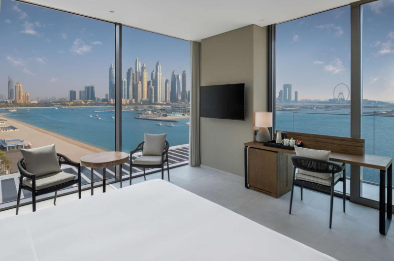 Camerele luminoase de la Radisson Beach Resort Palm Jumeirah sunt dotate cu aer condiționat, Tv și seif. Fiecare cameră dispune de un aparat pentru preparare cafea sau ceai, cană-fierbător și minibar. Oaspeții pot solicita serviciul de room service pentru a servi masa sau diverse băuturi. În camere există baie cu cadă sau duș ce are în dotare foehn și articole de toaletă gratuite. Camerele au balcon cu vedere la mare sau la oraș. Curățenia in cameră se face zilnic. Proprietatea oferă camere pentru familie cu o suprafață mai mare și un număr mai mare de paturi față de cele standard.