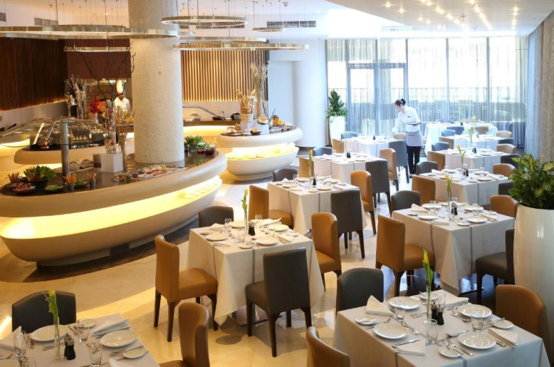 La Ramada By Wyndham Barsha Heights oaspeții au la dispoziție 2 restaurante unde pot savura mâncăruri delicioase, în stil bufet sau à la carte. Preparate din bucătăria internațională, asiatică și orientală așteaptă să fie degustate în fiecare zi. Masa poate fi servită atât în interior, cît si în aer liber, pe terasă, în funcție de vreme. Oaspeţii pot avea diverse băuturi răcoritoare sau alcoolice la bar.