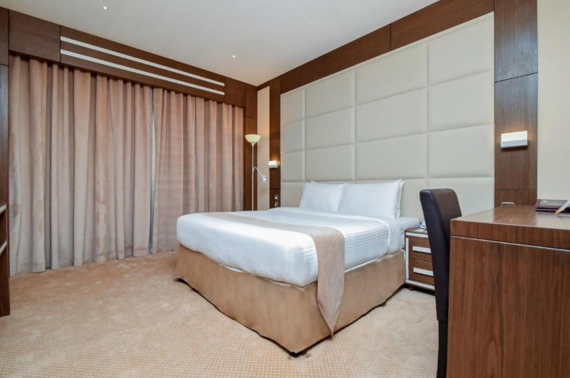 Camerele Hotelului Ras Al Khaimah sunt decorate in tonuri neutre, cu mobilier din lemn. Toate camerele au birou, minibar și baie privată. Unele camere au o zonă de living separată.