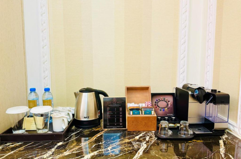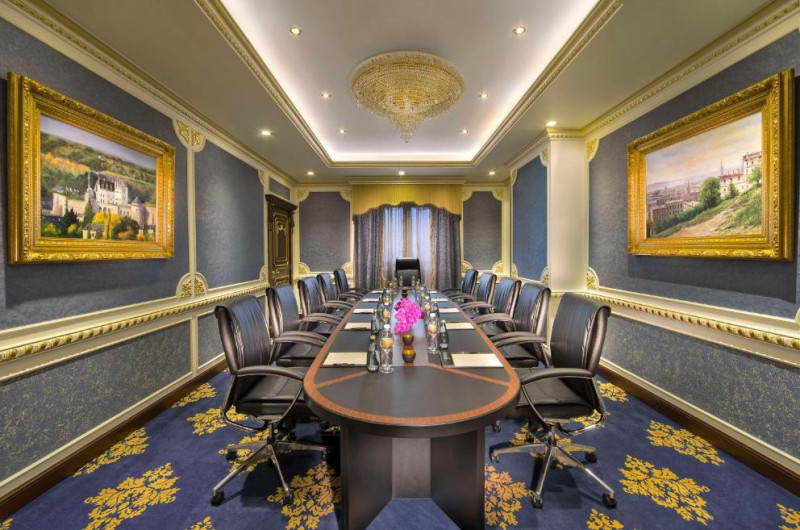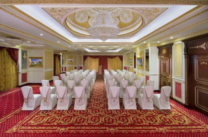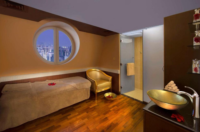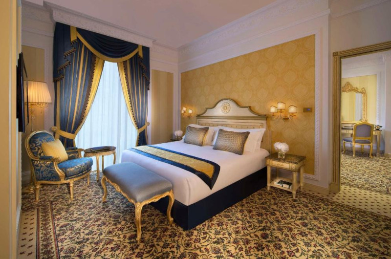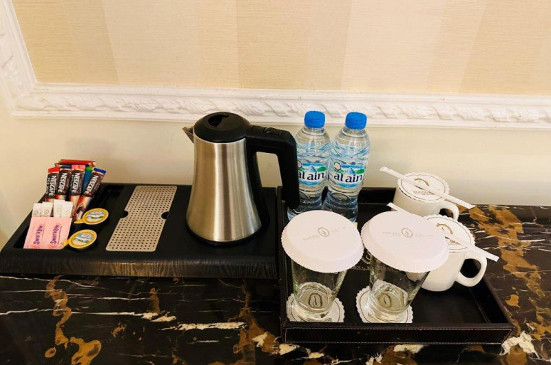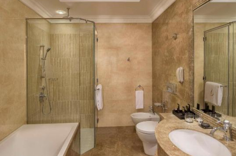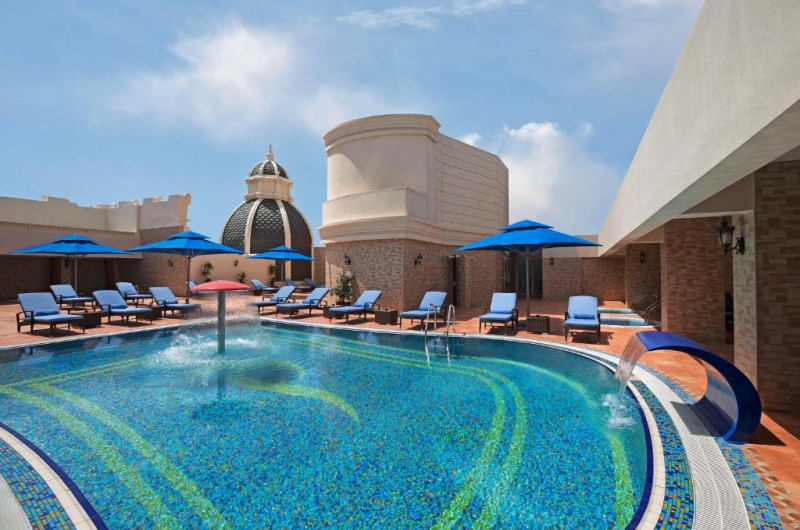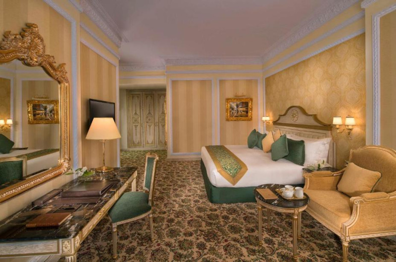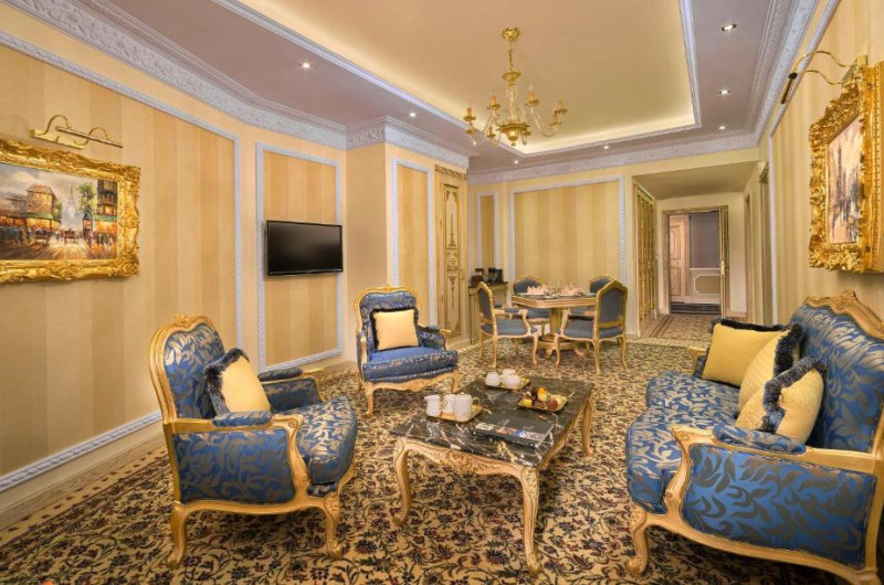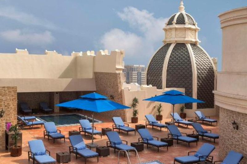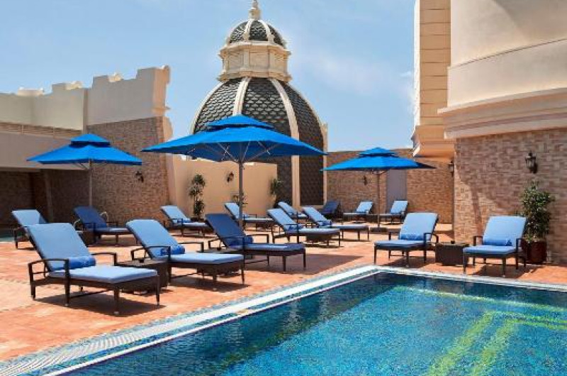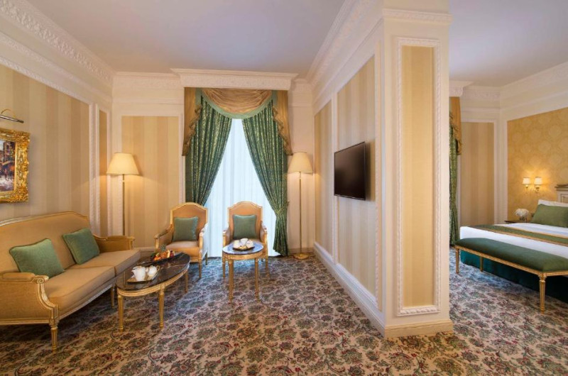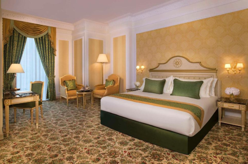 Camerele și suitele spațioase sunt decorate cu mobilier elegant și finisaje de inaltă calitate, reflectand luxul și rafinamentul specific Orientului Mijlociu. Facilitățile hotelului includ un centru spa cu servicii complete, sală de fitness modernă și piscină interioară.