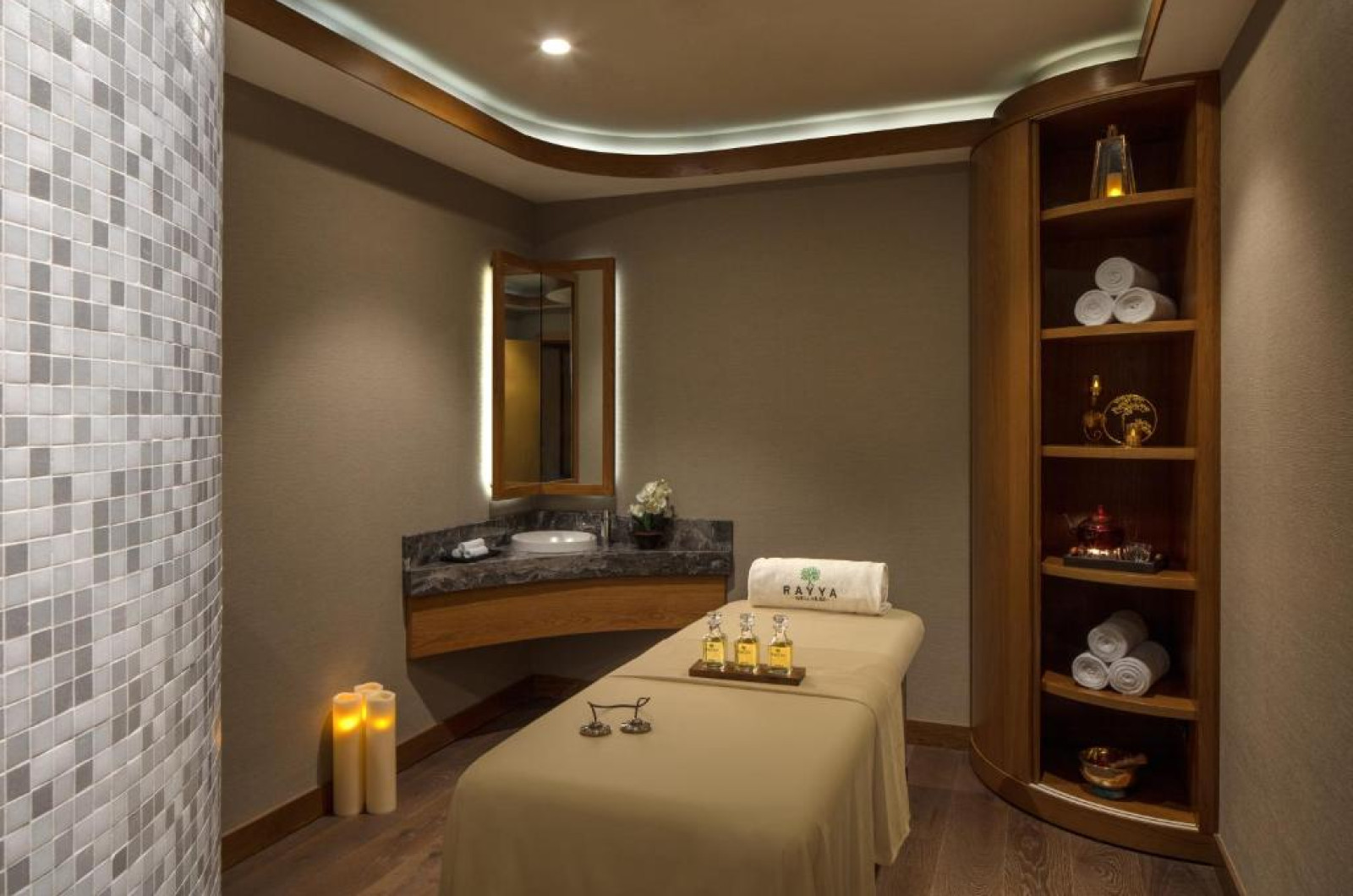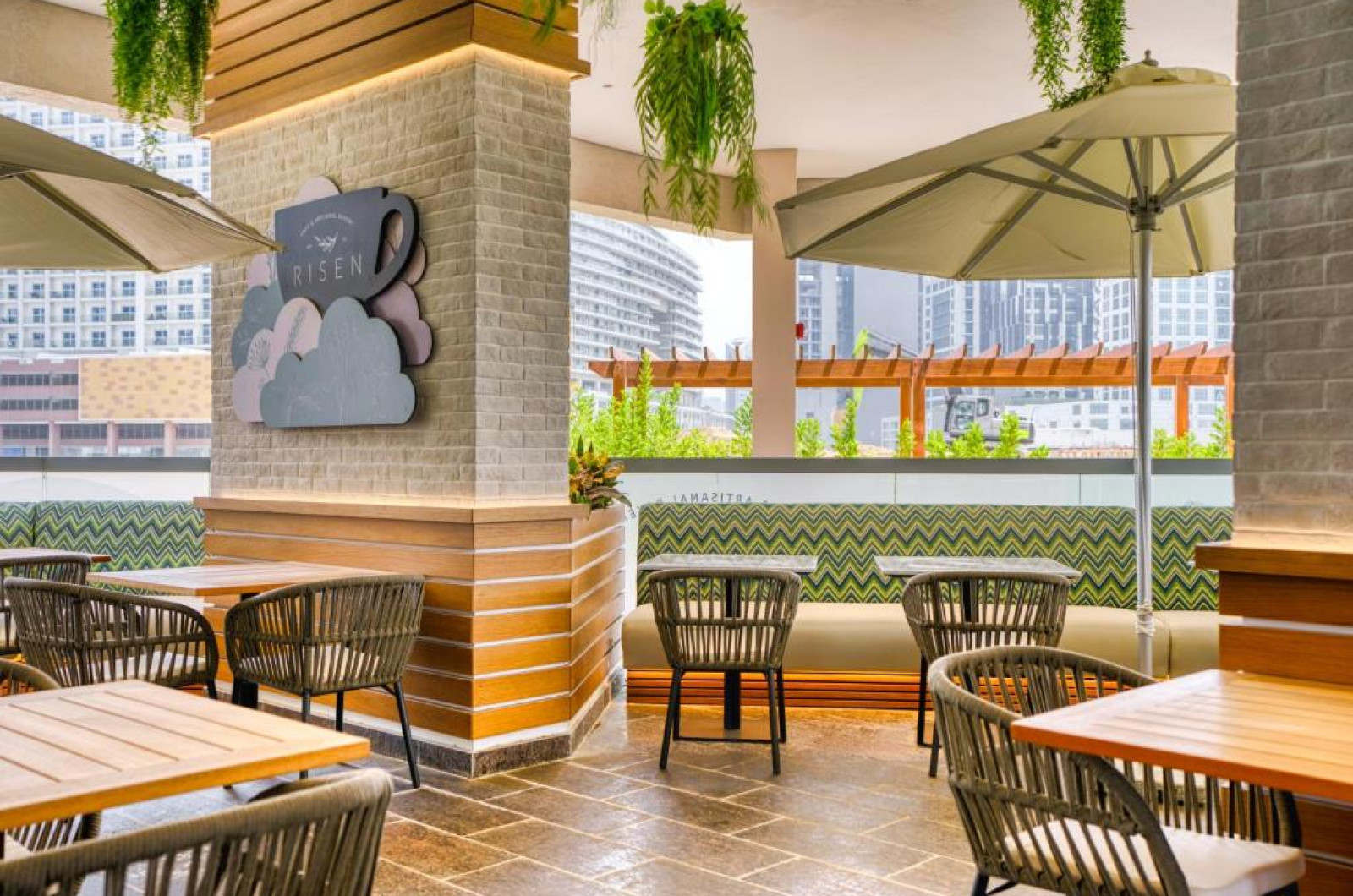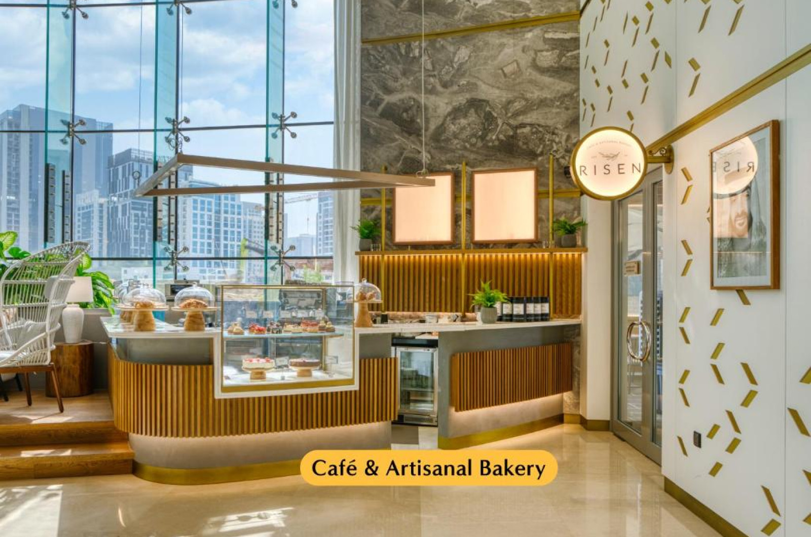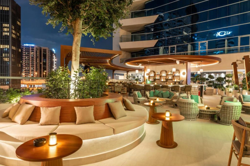 O gamă largă de opțiuni de luat masa sunt disponibile la hotel, inclusiv Blacksmith – o casă de friptură premiată, Vyne – un restaurant deschis pe tot parcursul zilei care servește preparate din bucătăria internațională, cafenea Risen și o piscină mare de 25 m lungime, cu o terasă la piscină cu vedere la orizontul Dubaiului. Hotelul include un club lounge exclusiv pentru oaspeți, o sală de sport complet echipată, precum și camere spa separate pentru bărbați și femei.