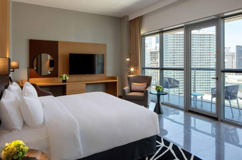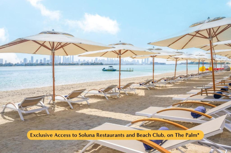 Oaspeții cazați la acest hotel sunt eligibili să acceseze restaurantele Soluna și clubul de plajă de la The Palm, inclusiv transportul regulat. Acest hotel de 4 stele are 437 de camere cu vedere la Canalul Dubai, grajduri sau emblematicul Burj Khalifa. Toate camerele oferă un birou spațios cu internet prin cablu sau WiFi, recepție deschisă nonstop și room service.