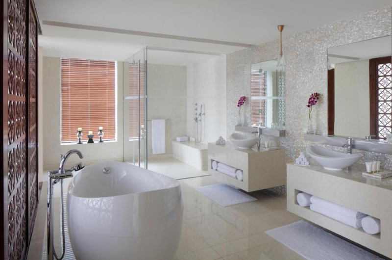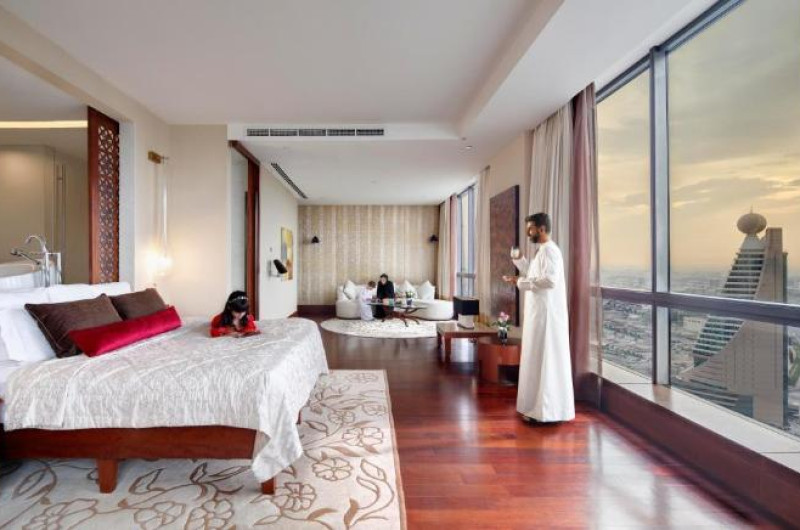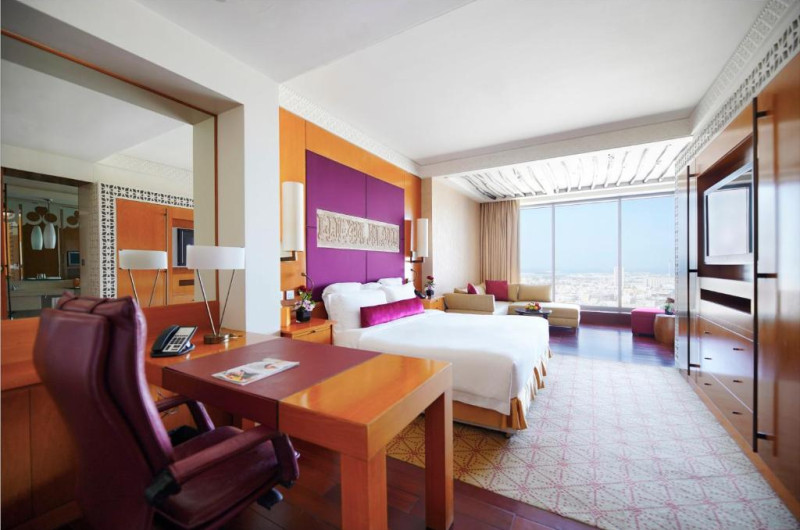 Hotelul oferă 236 de camere, apartamente și reședințe spațioase, de la 50 m₂ la 1.130 m₂. Decorul este inspirat din Arabia contemporană, iar fiecare cameră și suită a fost concepută pentru a oferi mobilier de pluș și o baie - completă cu o cadă supradimensionată și ploaie. duș.