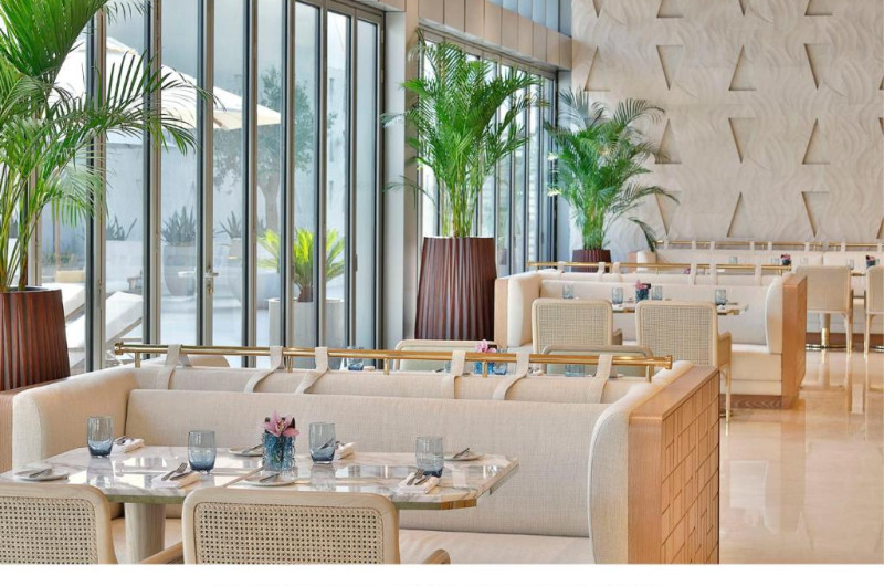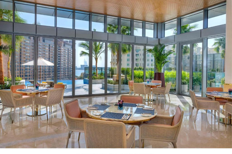 La The St. Regis Dubai, The Palm oaspeții au la dispoziție un restaurant care servește mâncare à la carte. Preparate din bucătăria internațională așteaptă să fie degustate în fiecare zi la micul dejun, prânz și cină. Masa poate fi servită atât în interior, cît si în aer liber, pe terasă, în funcție de vreme. Sunt disponibile 2 baruri unde oaspeții pot avea diverse băuturi răcoritoare sau alcoolice. În cadrul proprietății există și o patiserie care servește diverse delicatese.