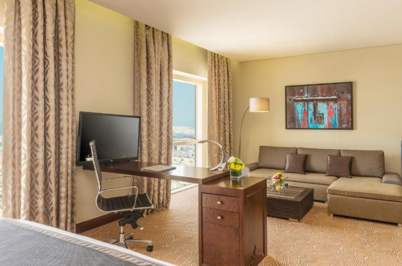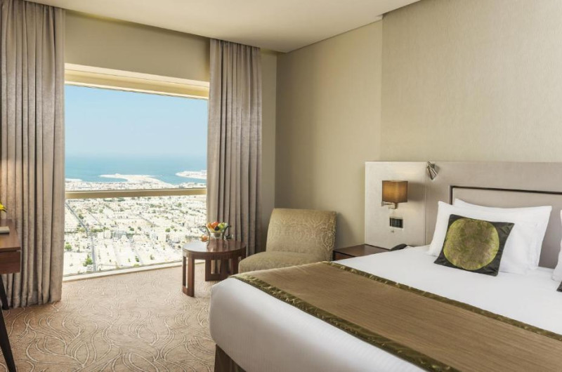 Camerele Hotelului Tower Plaza au aer condiționat, zonă de relaxare cu TV cu ecran plat și minibar. Unele camere oferă vedere la Dubai. Toate camerele includ o baie spațioasă, dotată cu duș separat si cadă. Camerele au ferestre mari si sunt decorate in culori deschise, cu nuanțe de bej.
