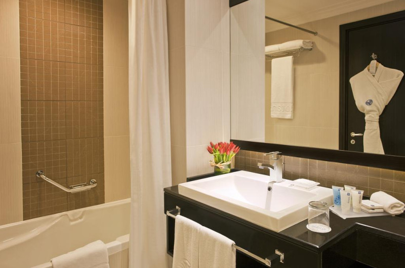 Towers Rotana are în apropiere o plajă cu nisip. Pe plajă există șezlonguri și umbrele de plajă contra cost.