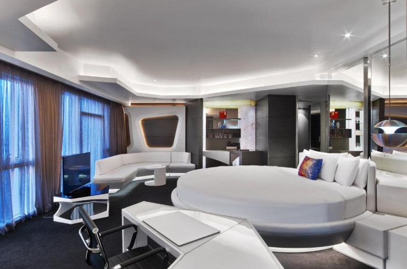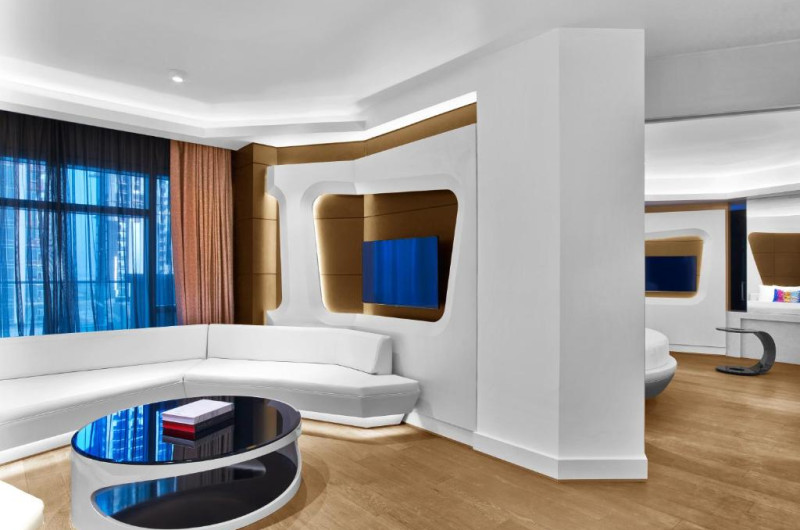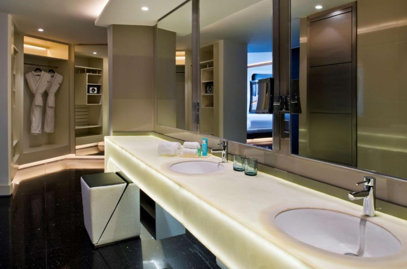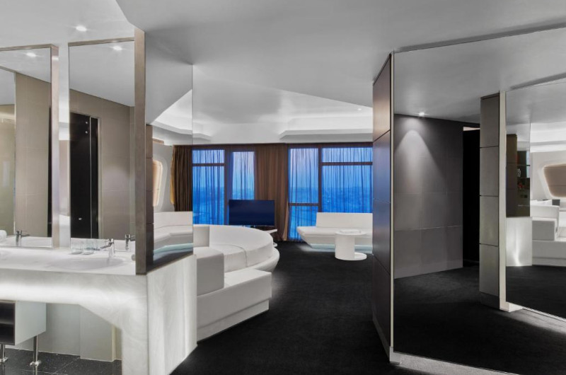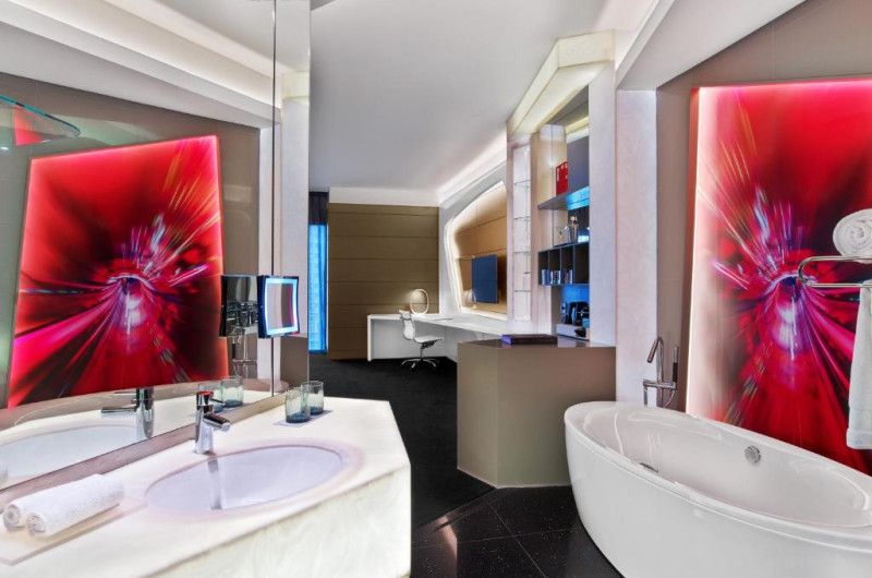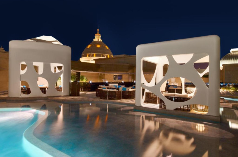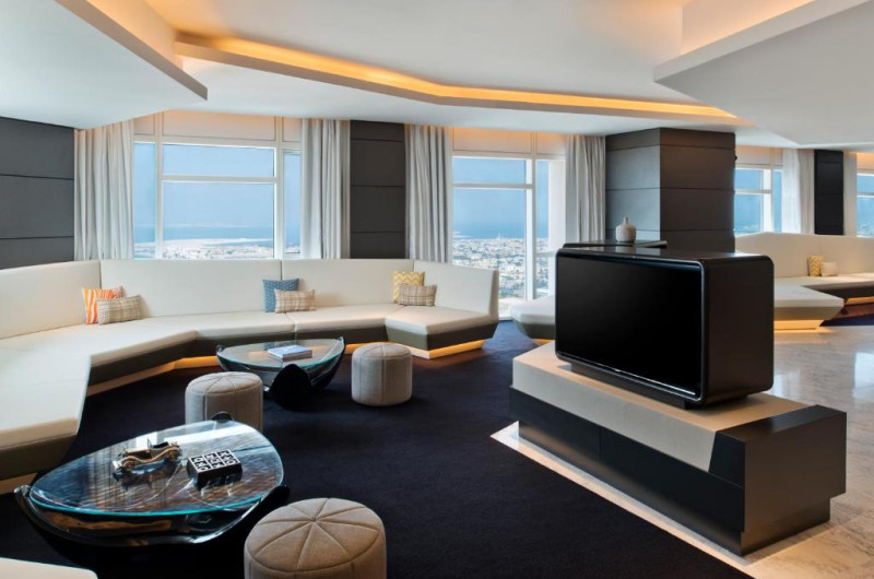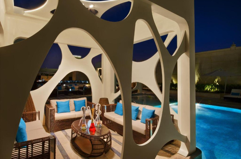 Această proprietate de 5 stele se află în Dubai și oferă unități de cazare cu aer condiționat și o piscină în aer liber, cu șezlonguri și umbrele de soare. Facilitățile de la V Hotel Curio Collection By Hilton includ sală de fitness, teren de tenis și business centre. Proprietatea are, de asemenea, servicii de recepție cu program non - stop, concierge și închirieri auto. Se oferă acces gratuit la internet Wi-fi în spațiile publice. Parcarea este disponibilă la proprietate gratuit.