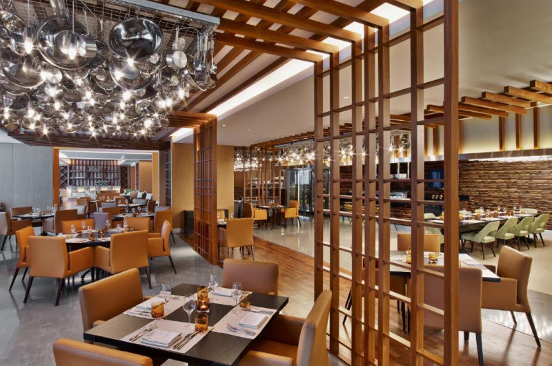 La V Hotel Curio Collection By Hilton oaspeții au la dispoziție 3 restaurante unde pot savura mâncăruri delicioase, în stil bufet sau à la carte. Preparate din bucătăria internațională și mediteraneană așteaptă să fie degustate în fiecare zi la micul dejun, prânz și cină. Masa poate fi servită atât în interior, cît si în aer liber, pe terasă, în funcție de vreme. 3 baruri, dintre care unul la piscină, sunt disponibile cu o ofertă variată de băuturi răcoritoare și alcoolice. Pentru cei cu anumite nevoi de nutriție, V Hotel Curio Collection By Hilton oferă meniuri pentru diete speciale.