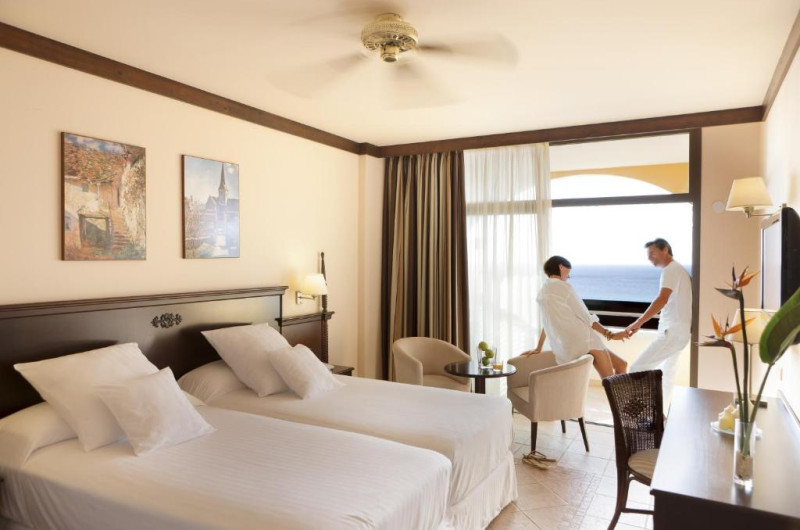 Toate camerele de la Occidental Jandía Playa au balcon privat sau terasă. Acestea oferă și aer condiționat, TV prin satelit, seif și baie privată cu ușcător de păr.
