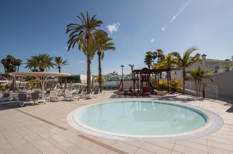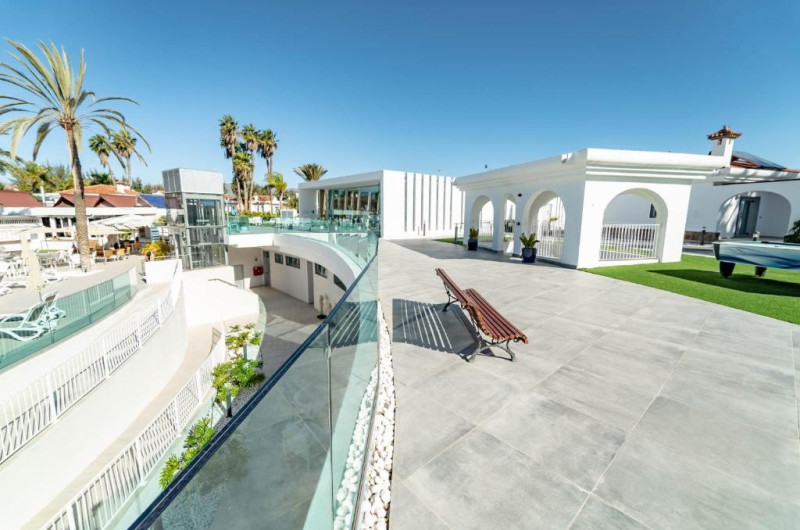 Situată in apropiere de renumitele Dune din Maspalomas si de terenul de golf, această proprietate este locul ideal pentru a petrece vacanțe de neuitat in fiecare perioadă a anului. Are o zonă doar pentru adulți in solar, cu piscină privată si cadă cu hidromasaj.