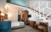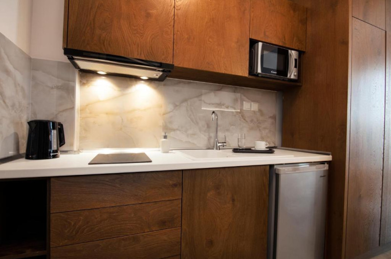 Unitățile de cazare au pardoseală din gresie, bucătărie complet utilată, cu frigider, TV cu ecran plat și canale prin satelit și baie privată, dotată cu duș și uscător de păr.