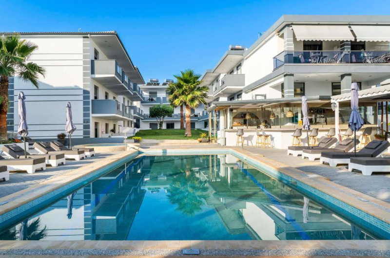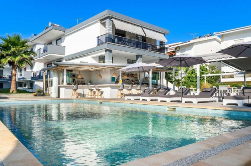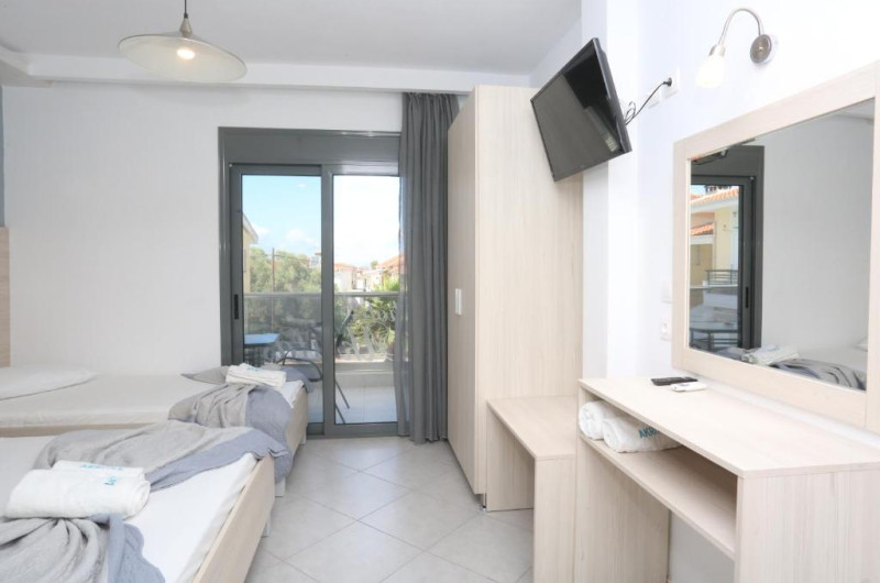 Cel mai apropiat aeroport este Aeroportul Salonic, situat la 81 km de aparthotel.