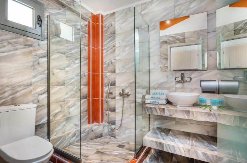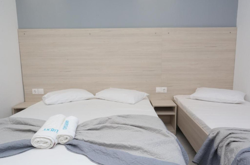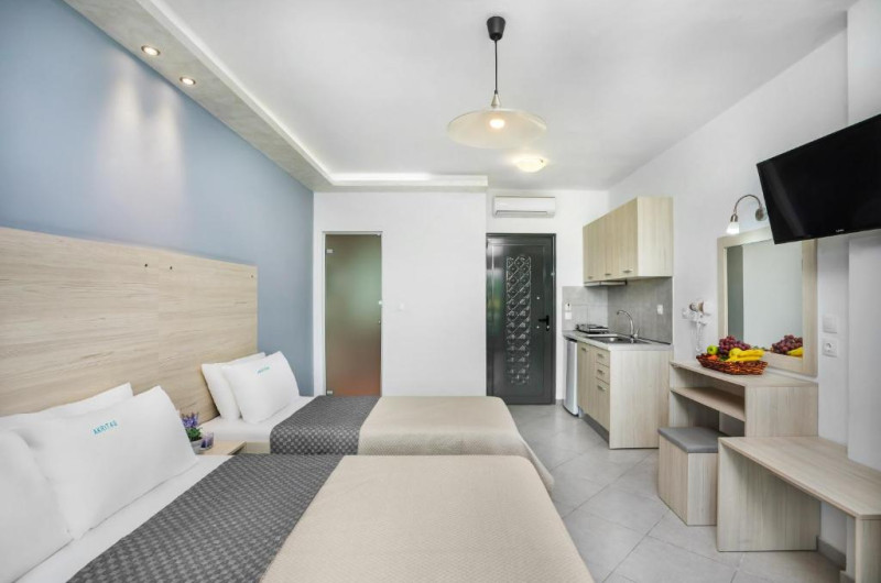 Hotelul Akritas se află la 2,3 km de Paralia Glarokabos si pune la dispoziție un bar, o grădină și unităti de cazare cu aer condiționat, WiFi gratuit și balcon.