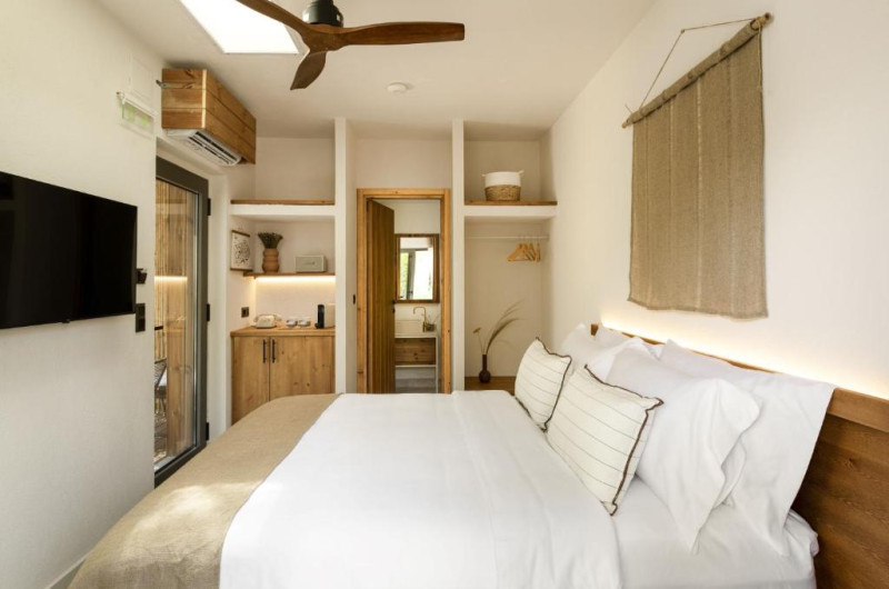 Camerele complexului sunt dotate cu aparat de cafea. Toate camerele de la Ergon Beach House Nikiti au baie privată cu duș și articole de toaletă gratuite, TV cu ecran plat și aer condiționat, iar unele camere au zonă de relaxare. La cazare camerele au lenjerie de pat si prosoape.