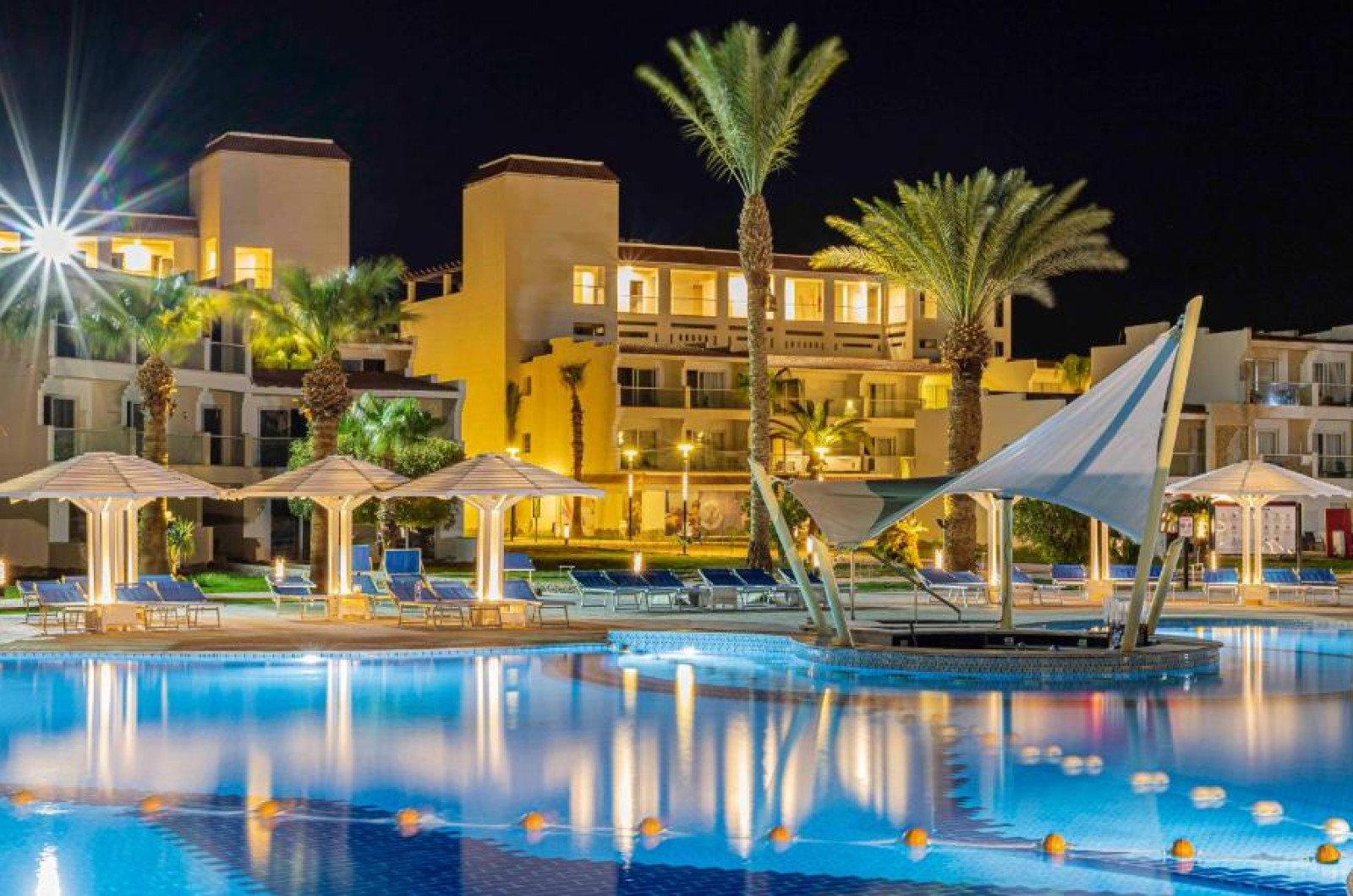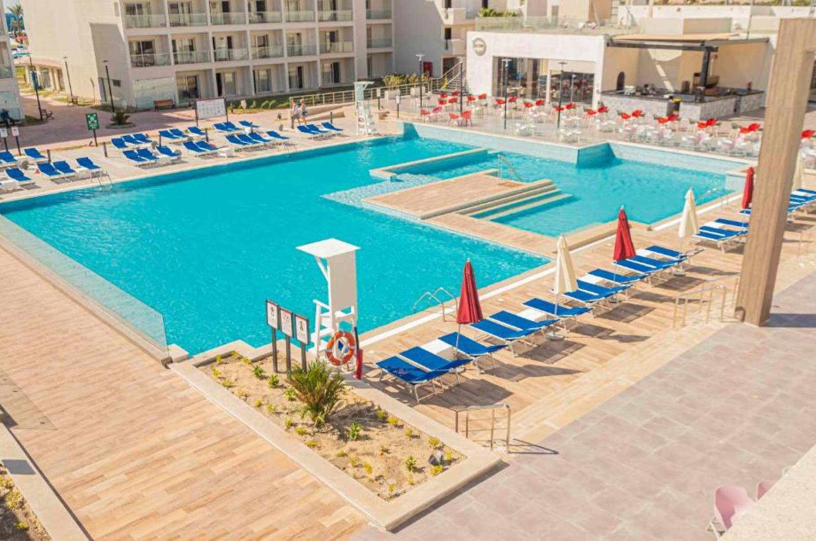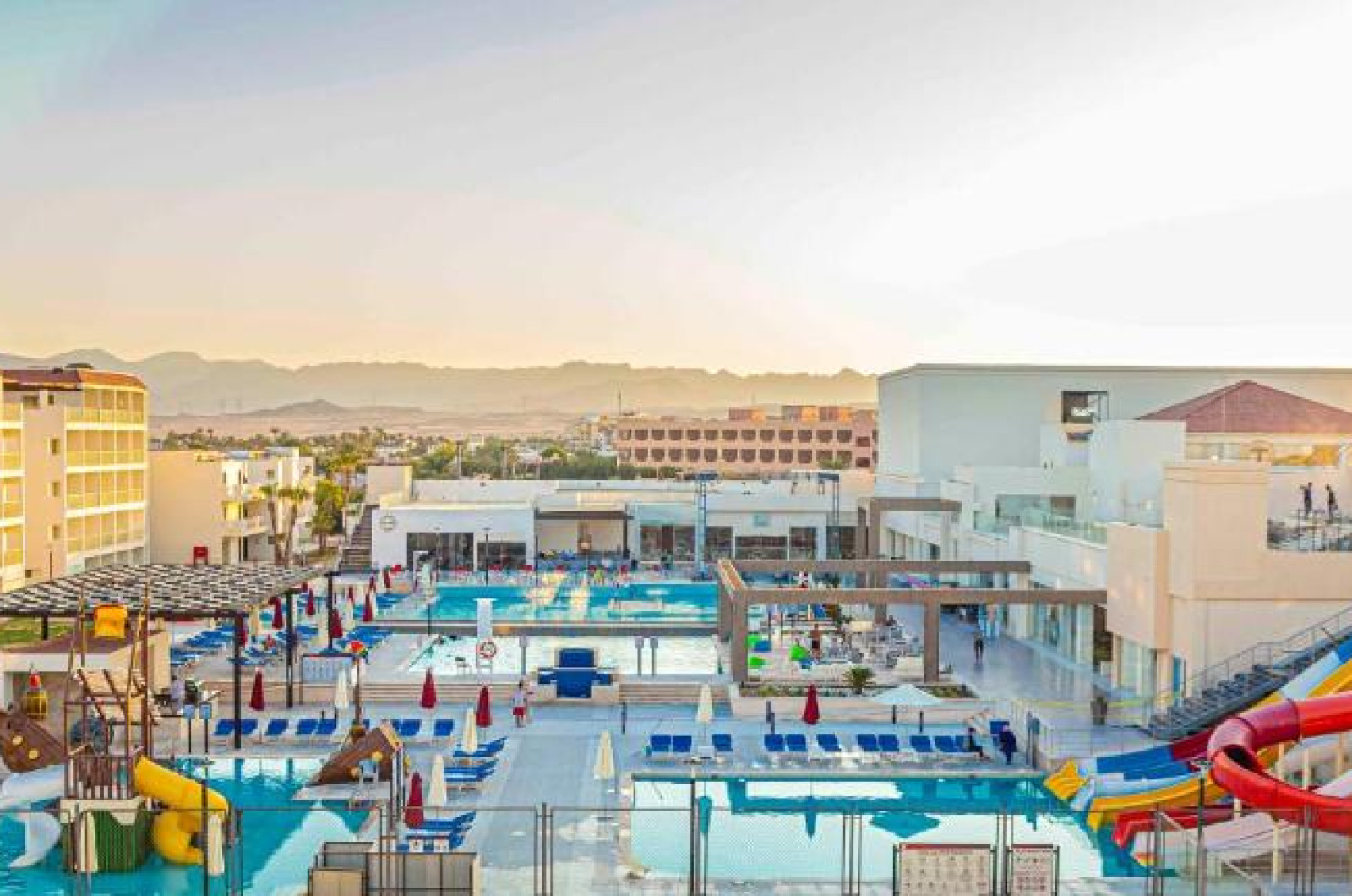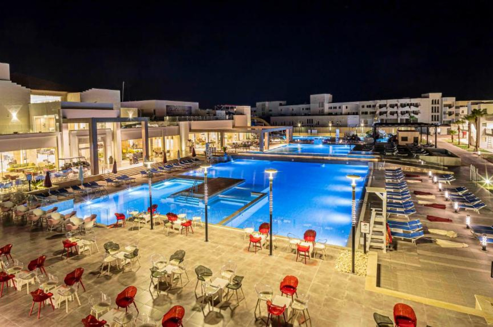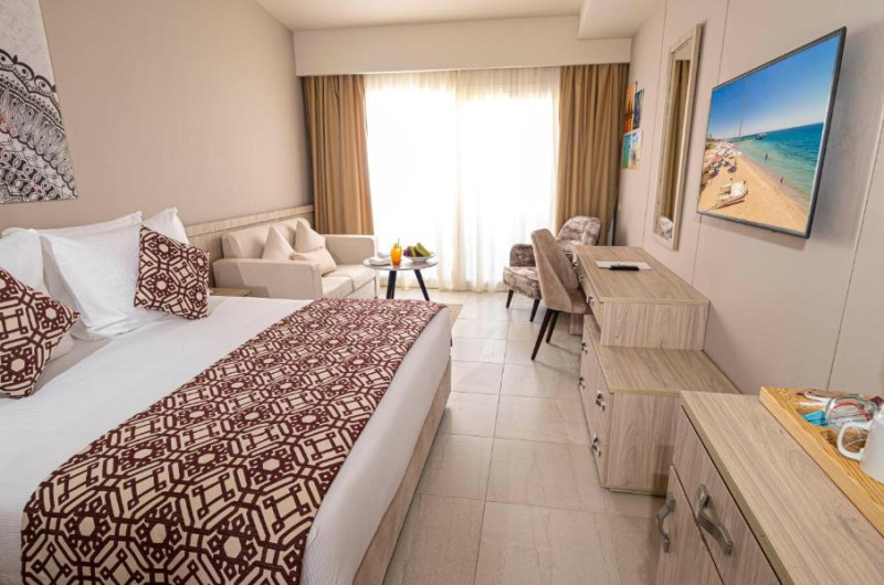 Fie că practică sport sau caută odihnă, clienții pot inota cateva lungimi de bazin in una din cele 5 piscine exterioare, iar copiii au la dispoziție un bazin cu apă de mică adancime. Senzații tari pe toboganul de apă, băuturi răcoritoare la barul piscinei și relaxare agreabilă a mușchilor in cada cu hidromasaj (contra cost) – piscina oferă ceva potrivit pentru orice dispoziție și energie. Șezlongurile confortabile și umbrelele răcoritoare așteaptă pe terasa insorită. Complexul oferă un program cuprinzător de sport in aer liber cu boccia, volei de plajă, tir cu arcul și mers nordic, precum și cu plată - ciclism/ciclism montan și tenis. Oferta de sporturi nautice cuprinde aerobic in apă precum și contra cost scufundări subacvatice. Resortul le oferă iubitorilor de sport și multe activități in interior, și anume o sală de fitness, tenis de masă, biliard, un joc de darts, gimnastică și aerobic. La locul de cazare se propun contra cost diverse oferte de relaxare, ca de exemplu un spa, o saună, o baie de aburi, un salon de infrumusețare și terapii prin masaj. Cei mari și și cei mici au posibilitatea de a-și face șederea mai interesantă prin programele de divertisment. Copyright GIATA 2004 - 2023. Multilingual, powered by www.giata.com for client no. 128259