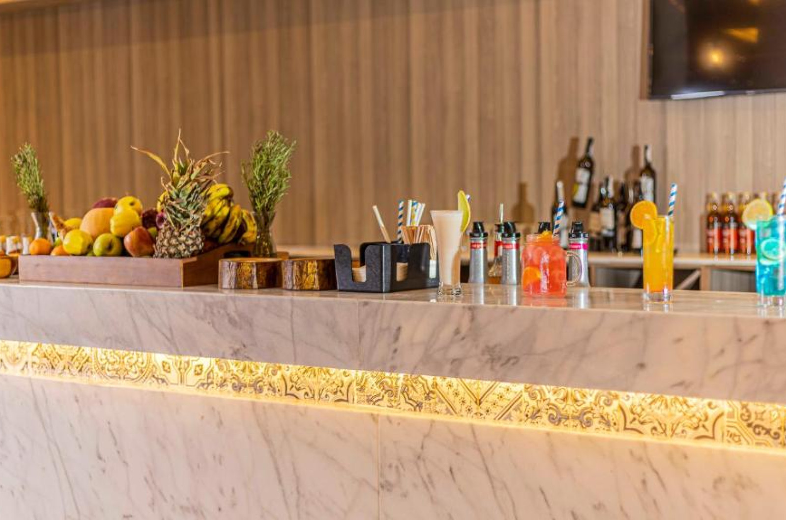 Există diverse locuri unde se poate lua masa: 5 restaurante, un bar, un pub și un lobby bar. Băuturile răcoritoare de la barul de pe plajă creează momente minunate. La centrul de cazare se oferă spre rezervare regim all inclusive. Un mic dejun pentru cei ce se trezesc devreme și pentru cei ce se trezesc tarziu, pranzul și cina imbie cu o ofertă diversificată de bucate.