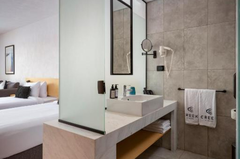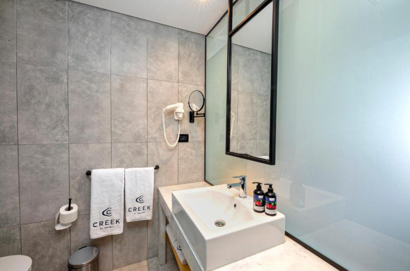 Camerele de la acest hotel includ climatizare, o zonă de relaxare, un televizor cu ecran plat cu canale prin satelit, o cutie de valori și o baie proprie cu duș, articole de toaletă gratuite și un uscător de păr. Fiecare cameră este dotată cu o ibric electric, iar unele camere speciale sunt echipate cu o chicinetă cu un frigider, un cuptor cu microunde și un minibar. La Creek Hotel and Residences El Gouna, toate camerele sunt dotate cu lenjerie de pat și prosoape.