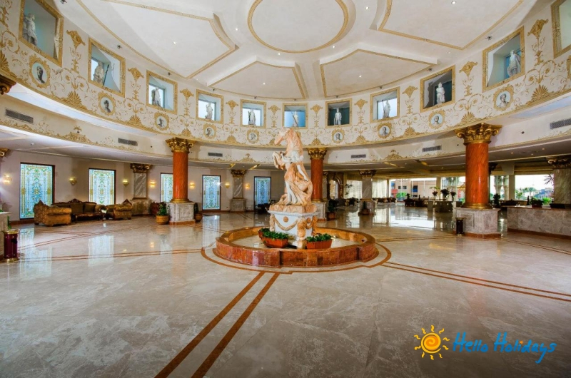 Hotelul isi primeste clientii cu receptie 24h, lobby, 3 piscine principale (incalzite pe timpul iernii), piscine pentru copii, Aqua Park, club activitati pentru copii, loc de joaca pentru copii, sala cu jocuri, spectacole, discoteca, sala fitness, teren de sport, centru Spa cu jacuzzi, hammam, plaja privata, internet, parcare privata, magazin pentru souveniruri, sala de conferinte, cinema pentru copii, bancomat, asistenta medicala, shuttle bus spre centrul orașului, plaja privata.