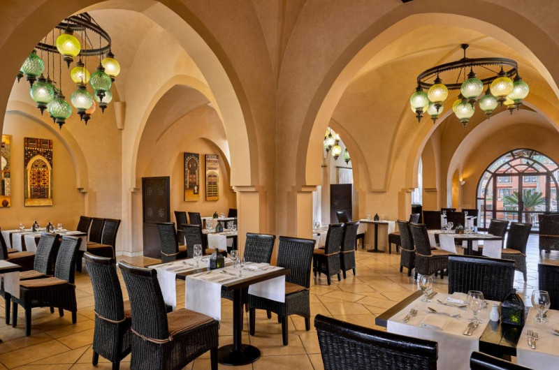 La Jaz Dar El Madina oaspeții au la dispoziție 4 restaurante unde pot savura mâncăruri delicioase, în stil bufet sau à la carte. Preparate din bucătăria internațională și italiană sunt oferite zilnic la micul dejun, prânz și cină. Masa poate fi servită atât în interior, cît si în aer liber, pe terasă, în funcție de vreme. Sunt disponibile 2 baruri unde oaspeții pot avea diverse băuturi răcoritoare sau alcoolice.