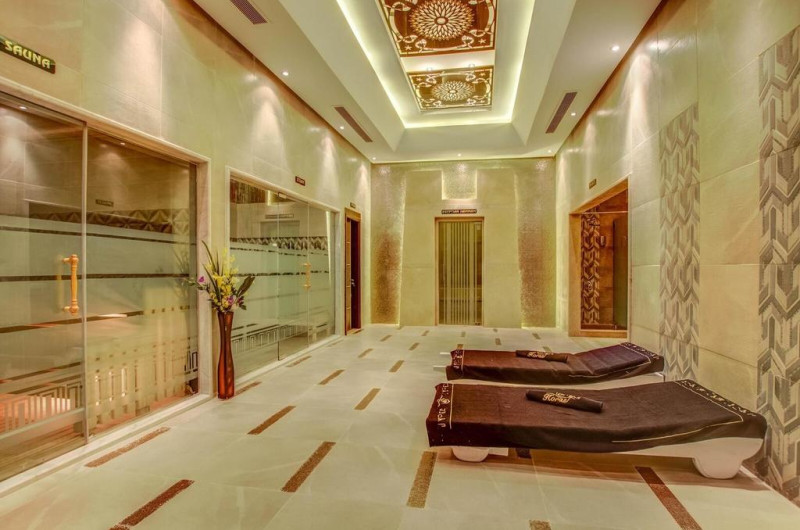 Din facilitățile oferite de proprietate nu lipsește centrul de wellnes și spa, unde oaspeții se pot relaxa la masaj sau la saună. Palm Beach Resort are în dotare cadă cu hidromasaj. În cadrul proprietatății există 2 piscine în aer liber pentru cei care doresc să se relaxeze și să se bronzeze.