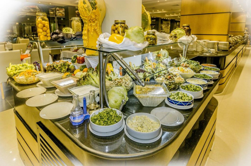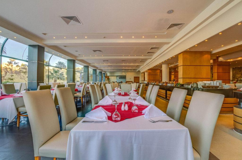 La Palm Beach Resort oaspeții au la dispoziție 2 restaurante unde pot savura mâncăruri delicioase, în stil bufet sau à la carte. Preparate din bucătăria internațională așteaptă să fie degustate în fiecare zi la micul dejun, prânz și cină. Masa poate fi servită atât în interior, cît si în aer liber, pe terasă, în funcție de vreme. 6 baruri sunt disponibile cu o ofertă variată de băuturi răcoritoare și alcoolice. În cadrul proprietății există și un snack bar care servește băuturi și gustări. Pentru cei cu anumite nevoi de nutriție, Palm Beach Resort oferă meniuri pentru diete speciale.