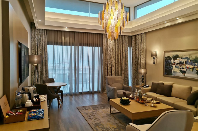 Hotelul are camerele decorate in culori fin pastelate, elegante si foarte spatioase si sunt dotate cu: balcon/ terasa, baie cu dus si uscator pentru par, produse cosmetice si articole de toaleta, Wi-Fi gratuit, minibar (umplut zilnic gratuit cu apa, racoritoare, bere), facilitati preparare ceai/cafea, halate si papuci de baie, Tv satelit, aer conditionat, seif.
