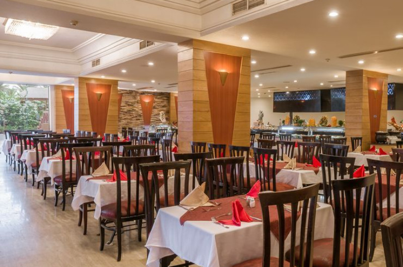 Hotelul ofera turistilor sai receptie 24h, lobby, 4 restaurante, 7 baruri, 5 piscine exterioare și separat piscină pentru copii, Aqua Park pentru copii si adulti, mini-market, magazine, discotecă, cinema, biliard, darts, tenis de masă, fotbal, volei, aerobic, loc de joaca pentru copii, mini club (copii 4-12 ani), curățătorie, parcare, room service, servicii medicale, tenis, sporturi nautice, proceduri Spa, baby sitting, centru de frumusete, 2 sali de conferinte si evenimente, internet Wi-Fi in zona Food-Court, program de animatie. Dispune de plaja privata cu nisip.