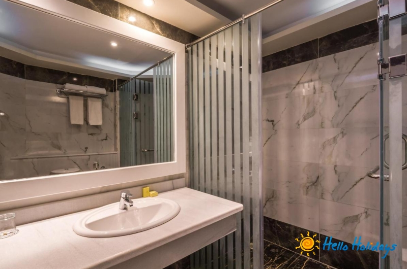 Toate camerele hotelului sunt prevazute cu baie proprie (cabină de duș sau cadă), uscător pentru păr, seif (contra cost), TV satelit, mini-bar, aer condiționat, balcon/ terasă.