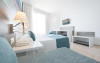 Aparatul de aer condiționat și o pardoseală incălzită ce poate fi ajustată individual creează o atmosferă plăcută in camere. In majoritatea spațiilor de cazare clienții beneficiază de vedere spre mare de pe balcon sau de pe terasă. Există dormitoare separate. De asemenea, pot fi puse la dispoziție pătuțuri pentru bebeluși și paturi suplimentare. Un seif oferă cea mai bună protecție pentru bunurile de preț ale clienților. Echiparea este completată de un telefon cu apelare directă, un televizor cu canale prin satelit/cablu TV și WiFi (contra cost). In baia dotată cu un duș și o cadă există un uscător de păr.