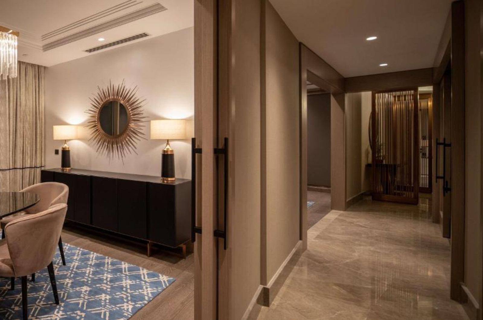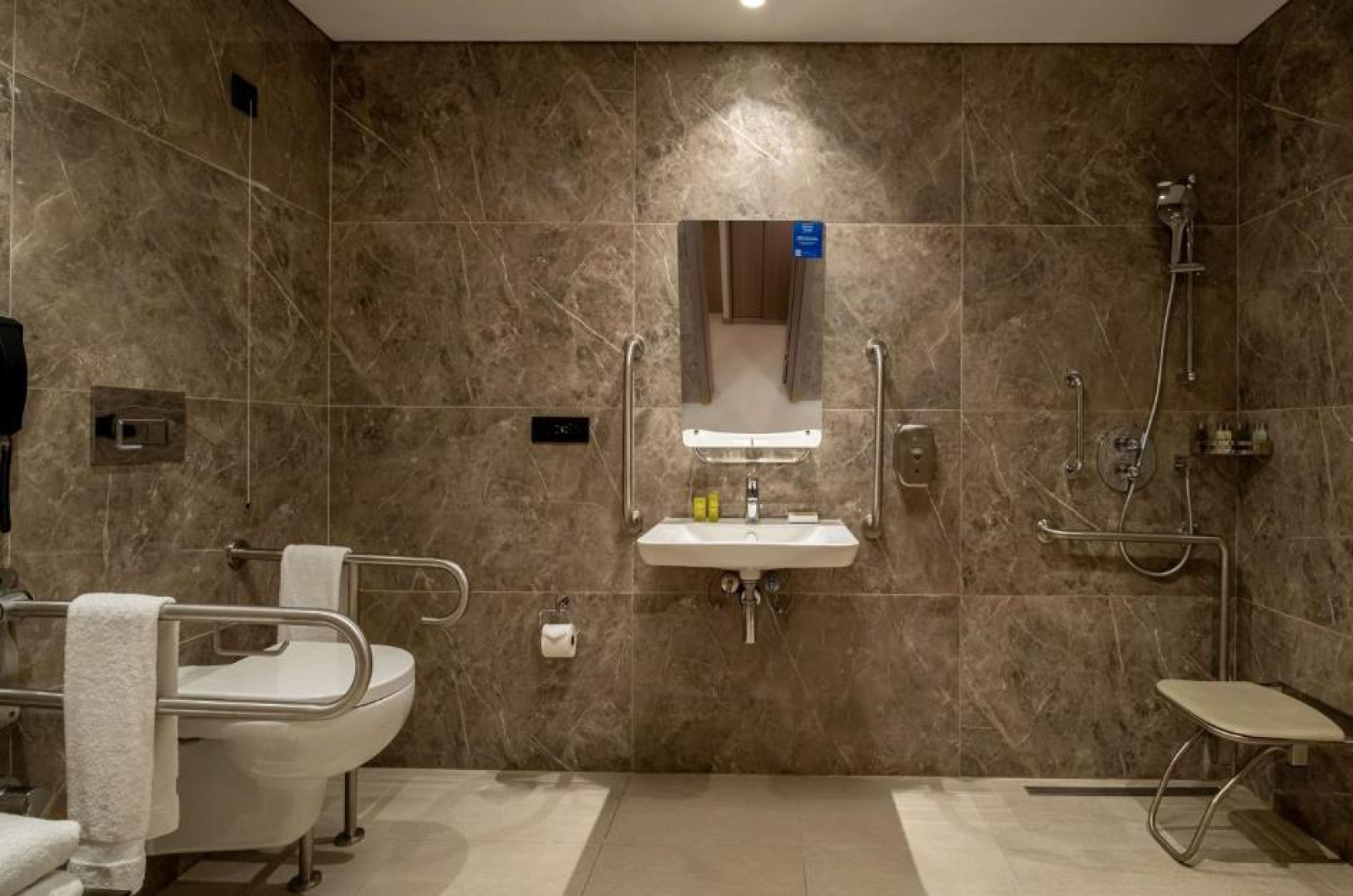 Proprietatea are o piscină interioară, un salon de coafură și un centru de afaceri.