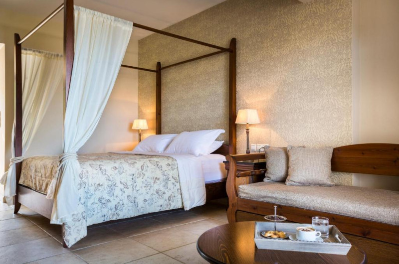 Camerele romantice ale Hotelului Almyra au mobilier de culoare crem si tapet elegant. Dotările standard includ facilităti pentru prepararea de ceai si cafea si acces gratuit la internet prin cablu.
