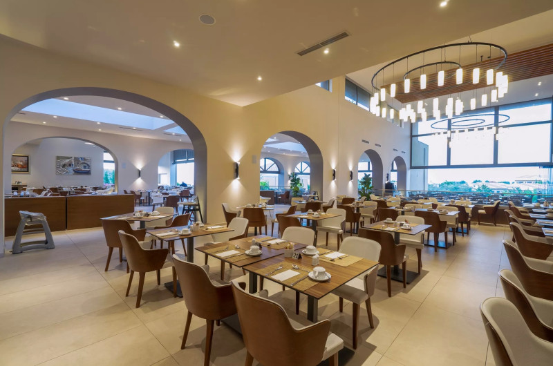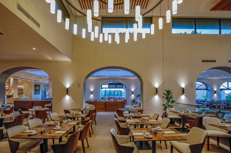 La Apollonion Asterias Resort & Spa oaspeții au la dispoziție 3 restaurante unde pot savura mâncăruri delicioase, în stil bufet sau à la carte. Preparate din bucătăria mediteraneeană și italiană sunt preparate zilnic. Masa poate fi servită atât în interior, cît si în aer liber, pe terasă, în funcție de vreme. 3 baruri, dintre care unul la piscină, sunt disponibile cu o ofertă variată de băuturi răcoritoare și alcoolice. Pentru cei cu anumite nevoi de nutriție, Apollonion Asterias Resort & Spa oferă meniuri pentru diete speciale.