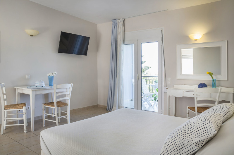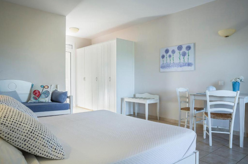 În camere există o sufragerie, o bucătărie și o baie; aparatul de aer condiționat creează o atmosferă plăcută. În majoritatea spațiilor de cazare clienții beneficiază de vedere spre mare de pe balcon sau de pe terasă. Camerele au un pat dublu, un pat „Queen size”, un pat „King size” sau o canapea. Sunt disponibile dormitoare separate. Paturile suplimentare sau paturile pentru copii sunt disponibile pentru cei mici contra cost. Lucrurile de valoare pot fi păstrate în siguranță într-un seif. În chicinetă se află un frigider, un minifrigider și un aparat pentru cafea/ceai. În plus, există un telefon cu apelare directă, un televizor cu canale prin satelit/cablu TV și WiFi (contra cost). Băile sunt dotate cu un duș, o cadă și o cadă cu hidromasaj. Un uscător de păr și o oglindă de machiaj sunt disponibile pentru folosința zilnică. De asemenea, stau la dispoziție camere adaptate pentru scaun cu rotile cu baie fără bariere. Complexul oferă camere de familie și camere de nefumători.