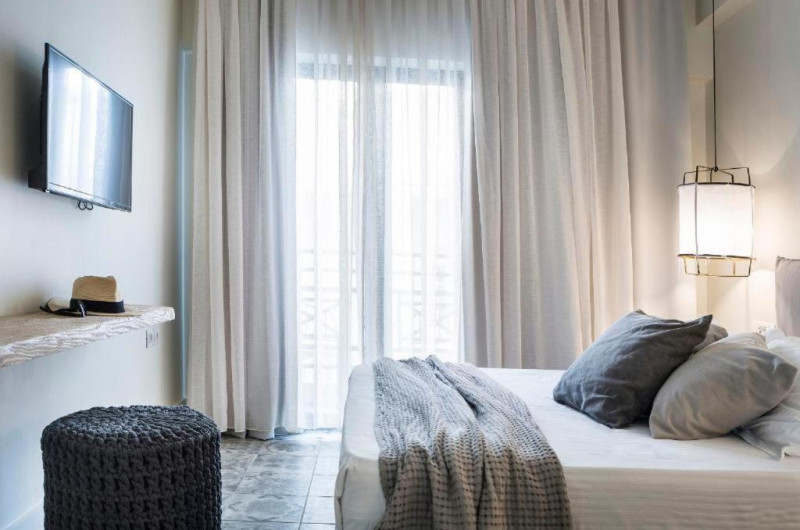 Camerele sunt decorate in tonuri calde de alb, cu accent de negru. Toate unitățile includ duș privat, halate și articole de toaletă gratuită. Podeaua și băile sunt realizate din ciment brut, iar unele camere au zonă de relaxare. Oferă TV cu ecran plat, iar anumite camere au vedere la mare, la grădină sau la oraș.