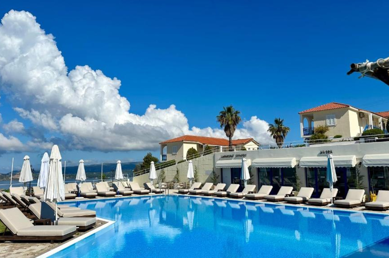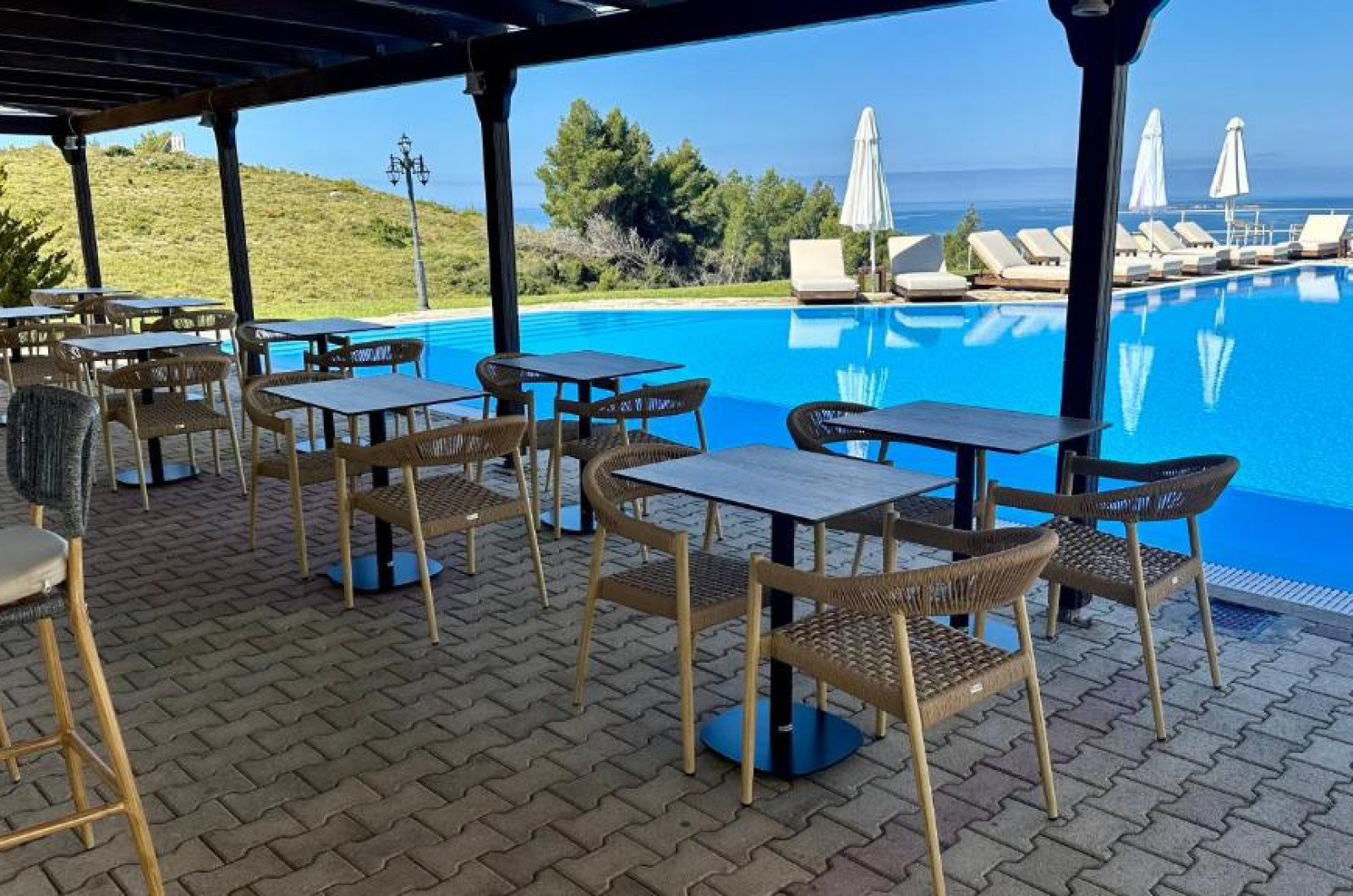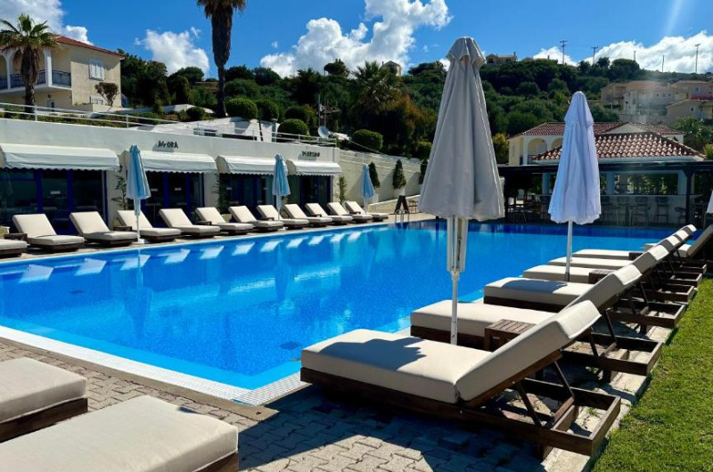 Restaurantul proprietății servește preparate din bucătăria grecească. Săptămanal sunt găzduite seri speciale de grătar cu muzică și un bufet variat cu grătare, paste și salate.