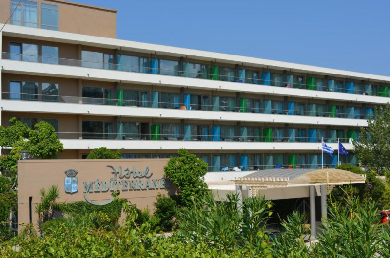 Mediterranee, amplasat chiar deasupra unei plaje cu nisip din localitatea Lassi, are o piscină cu secțiune separată pentru copii și șezlonguri. Se află in mijlocul unei grădini și oferă camere cu aer condiționat și WiFi gratuit, 2 restaurante și 2 baruri.