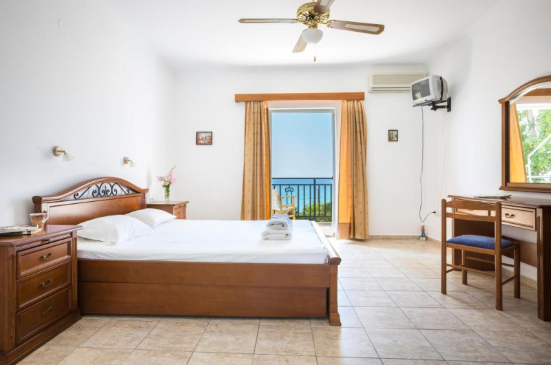 Camerele confortabile de la Stefanos Studios sunt dotate cu pardoseală de gresie/ marmură, aer condiționat și Tv. Fiecare cameră dispune de cană-fierbător. Camerele au balcon cu vedere la mare sau la grădină. În camere există baie cu duș prevăzută cu foehn. În fiecare unitate de cazare există bucătărie utilată cu frigider, plită de gătit și ustensile de bucătărie.