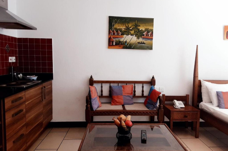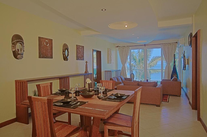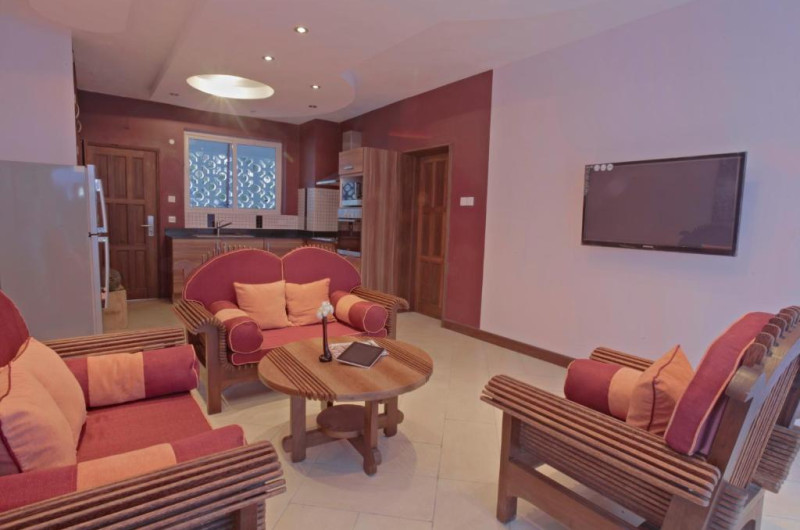 Fiecare apartament este dotat cu bucătărie complet utilată, zonă de living și dining, precum și aer condiționat. Restaurantul proprietății servește preparate din bucătăria internațională și specialități locale, cu accent pe fructe de mare proaspete. Pentru cei activi, zona oferă multiple posibilități de snorkeling și sporturi nautice.