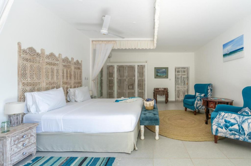 Camerele spațioase sunt decorate in stil swahili și oferă vedere spre grădina tropicală sau spre Oceanul Indian. Resortul dispune de piscină infinity cu vedere panoramică spre ocean, restaurant cu specific internațional și local, bar pe plajă și centru spa cu tratamente tradiționale africane.