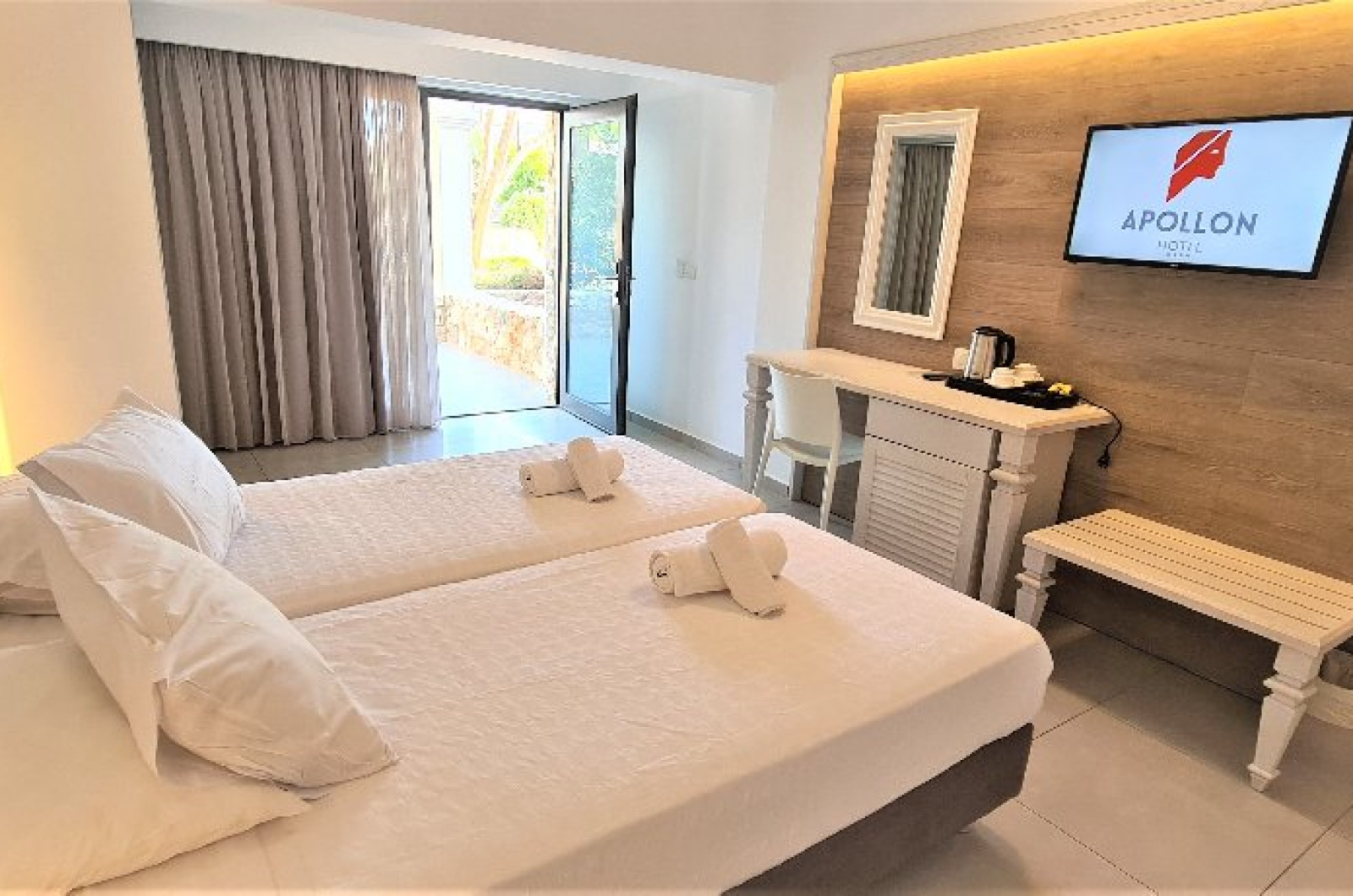 Descriere: Hotelul Apollon este un hotel de 4 stele, situat ideal foarte aproape de centrul orasului Kos, in zona Lambi si ofera facilitati care fac vacanta mai placuta. Camerele sunt confortabile, spatioase, pastrate in stare perfecta si fiecare este bine echipata.Localizare: Hotelul se afla la 150 m de plaja Lambi, la 1800m de orasul Kos si la 24km de aeroport.