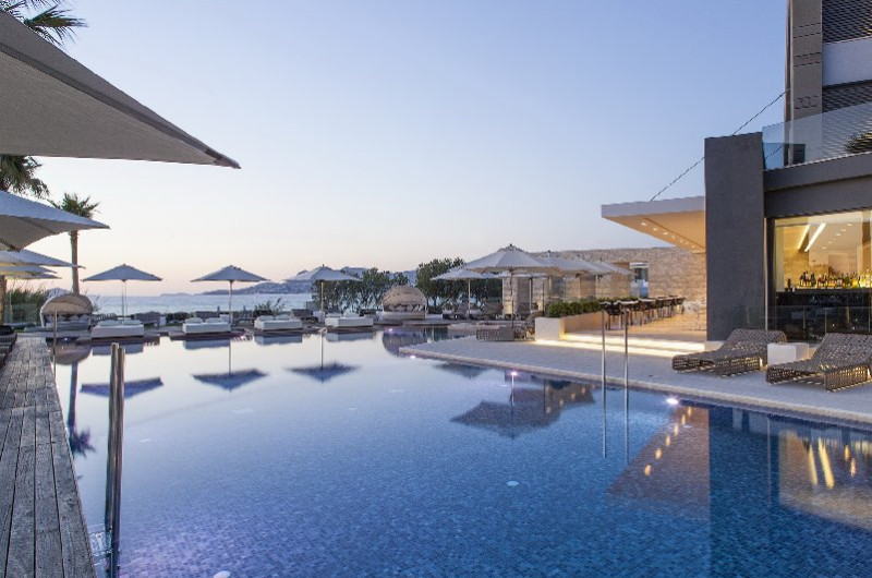 Localizare: Hotelul este situat in statiunea Lambi. Se afla la 1.5 km de orasul Kos, vizavi de plaja. Face parte din Small Luxury Hotels of The World.Hotelul este ADULTS ONLY! Nu accepta persoane cu varsta sub 16 ani. Recomandat in special cuplurilor.