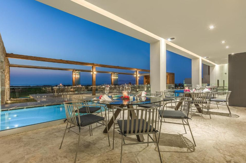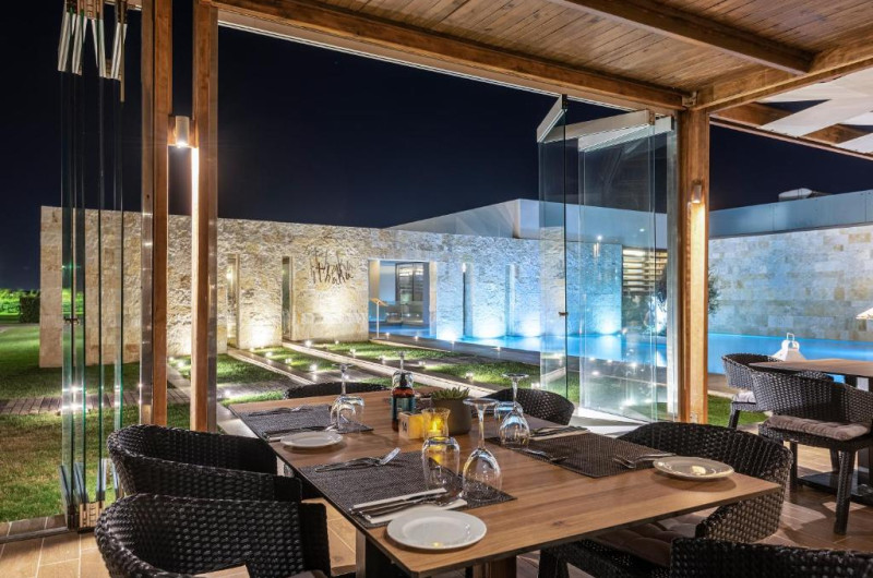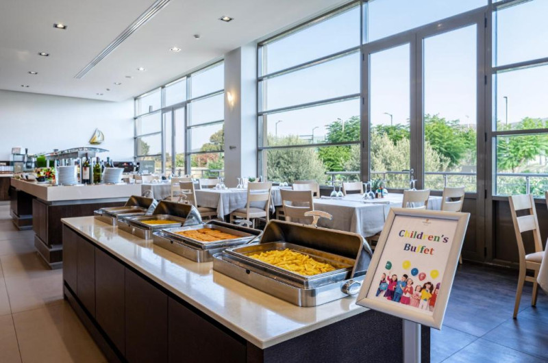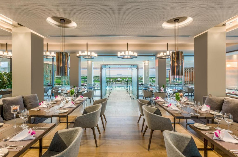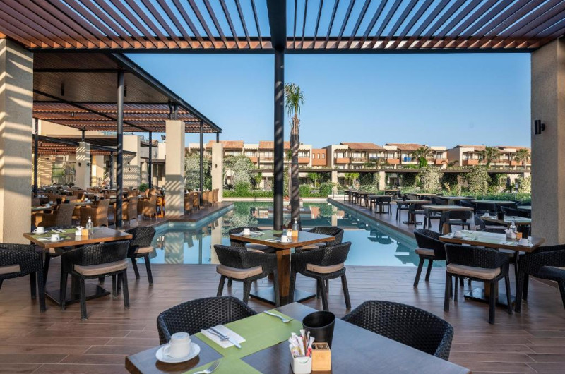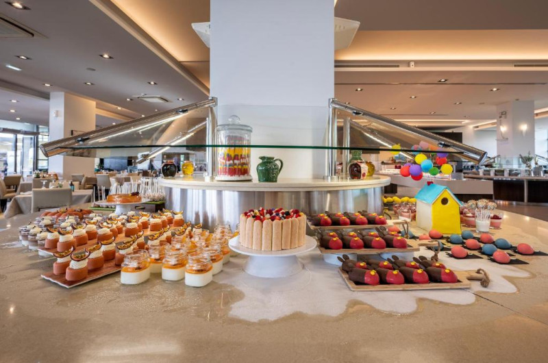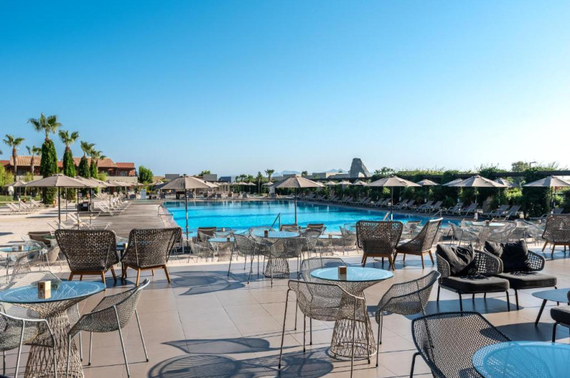Restaurantul Achilleas oferă mese tip bufet. Taverna Argo servește un bufet cu preparat la grătar pentru pranz, precum și un meniu a la carte pentru cină. In plus, oaspeții pot savura specialități internaționale la cină, la restaurantul a la carte Ithaka, aflat pe malul mării. Sunt disponibile și produse fără gluten. Barul de la piscină și elegantul Bar Sirens oferă băuturi, cafea și cocktailuri.