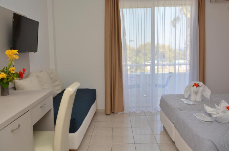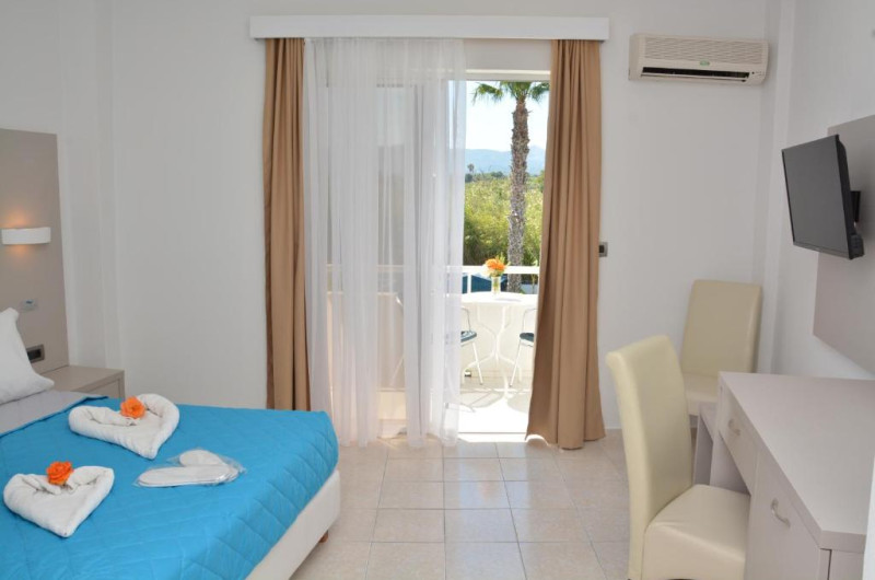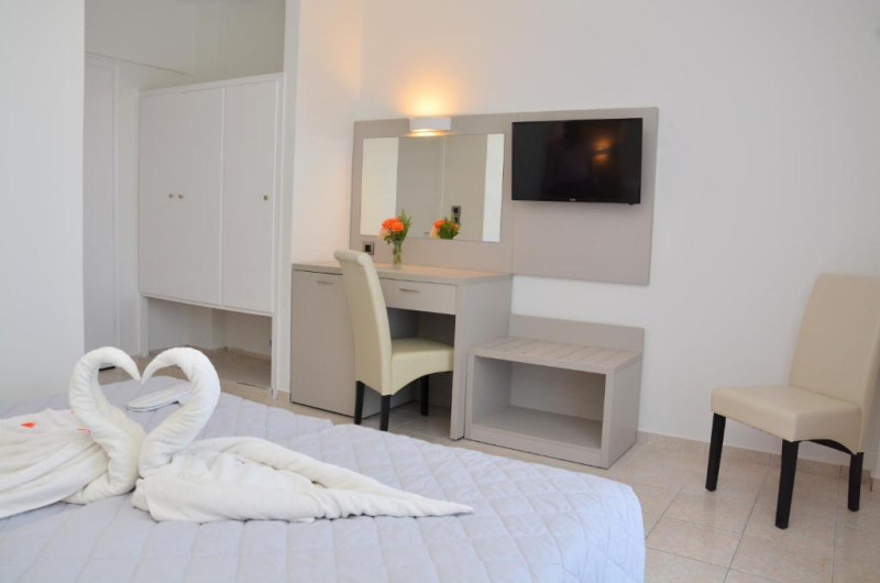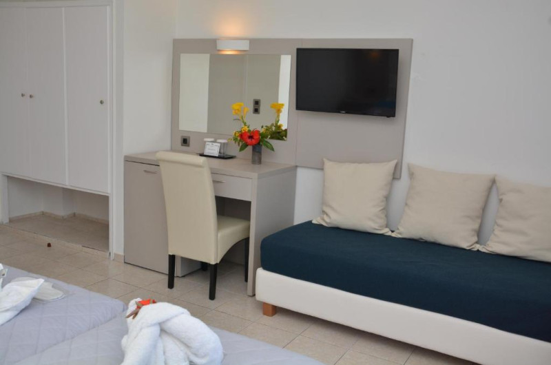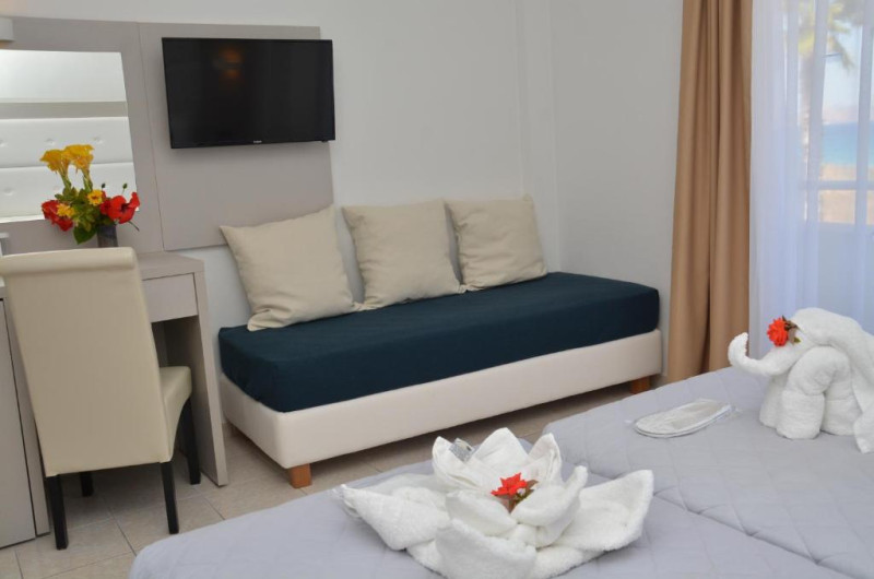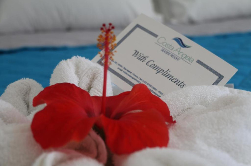 Toate unitățile hotelului includ TV cu ecran plat cu canale prin satelit. Fiecare cameră de la Costa Angela Seaside Resort este dotată cu aer și balcon. Camerele au baie privată cu duș.