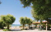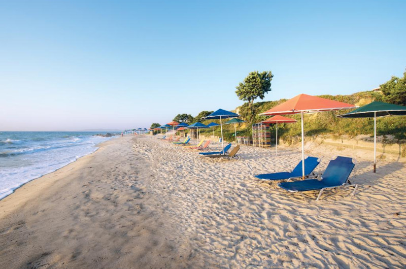 Pe plajă există șezlonguri și umbrele de plajă contra cost.