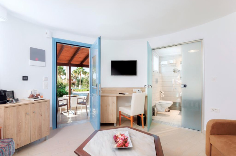 În camere există baie cu cadă sau duș prevăzută cu foehn. Unele camere au balcon cu vedere la mare sau la piscină. Fiecare cameră dispune de cană-fierbător. Camerele confortabile de la Eurovillage Achilleas au pardoseală de gresie/ marmură, aer condiționat, Tv cu canale prin satelit și seif. Oaspeții au acces la serviciul Wi-fi în camere contra cost. Curățenia in cameră se face zilnic. Fiecare unitate de cazare are frigider. Proprietatea oferă camere pentru familie cu o suprafață mai mare și un număr mai mare de paturi față de cele standard.