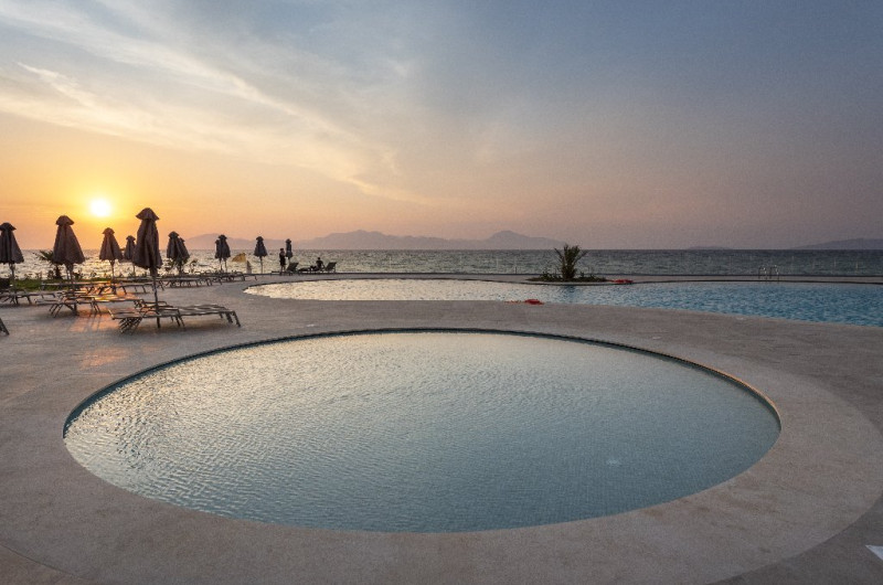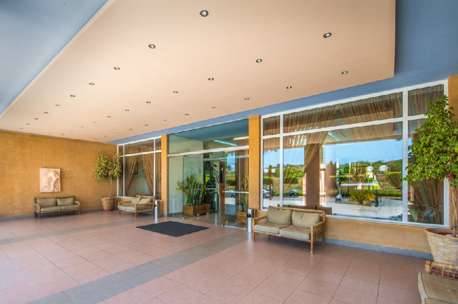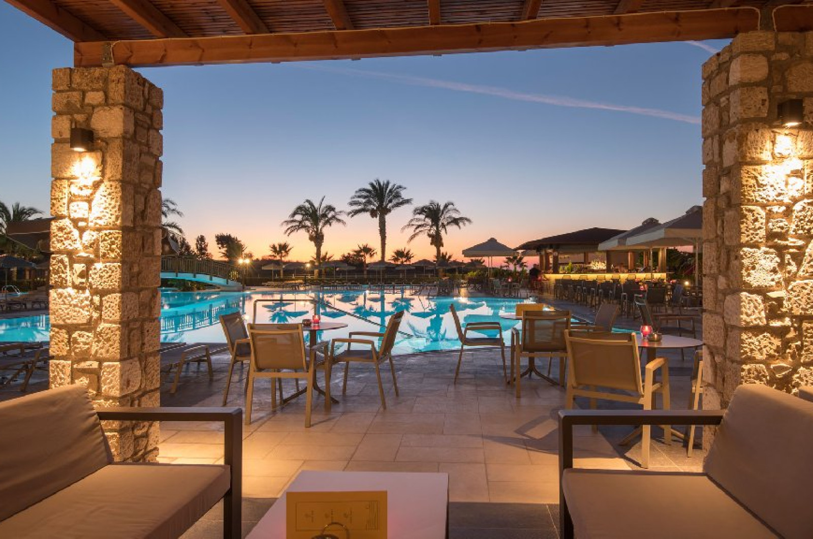 Hotelul dispune de urmatoarele facilitati: restaurant, taverna, 3 baruri, 2 piscine pentru adulti si 2 piscine pentru copii, program de animatie, teren de tenis, mini teren de fotbal, baschet, volei, sah in aer liber, centru pentru sporturi acvatice, Surfing Center pe plaja Troulos, mini club, loc de joaca pentru copii, coafor.