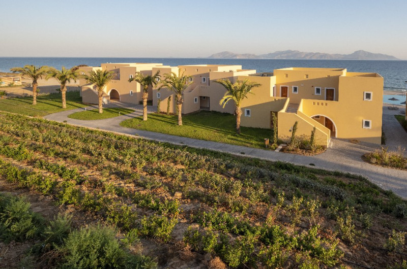 Resortul este situat pe o plaja lata de nisip, la 2 km de statiunea Mastichari,8 km de aeroport si 18 km de orasul Kos.